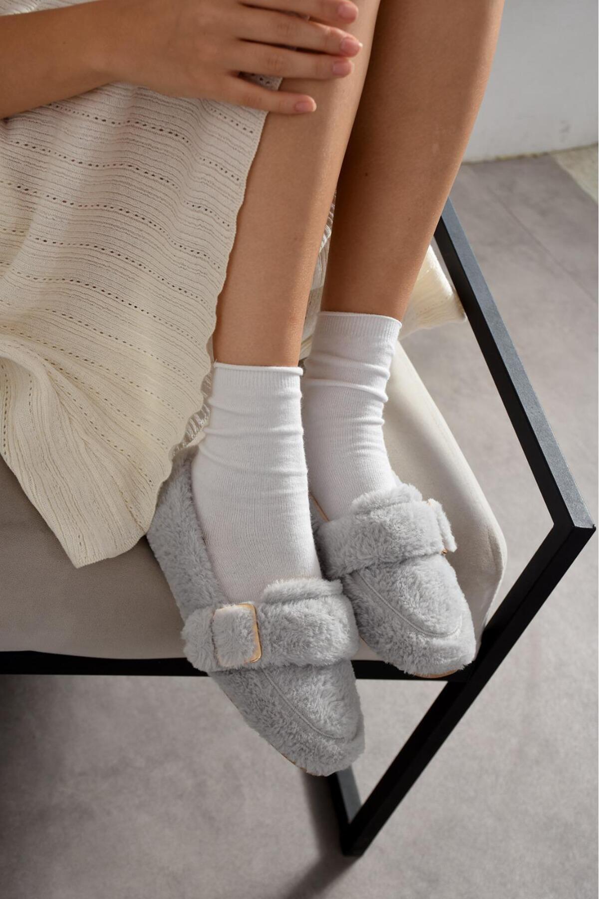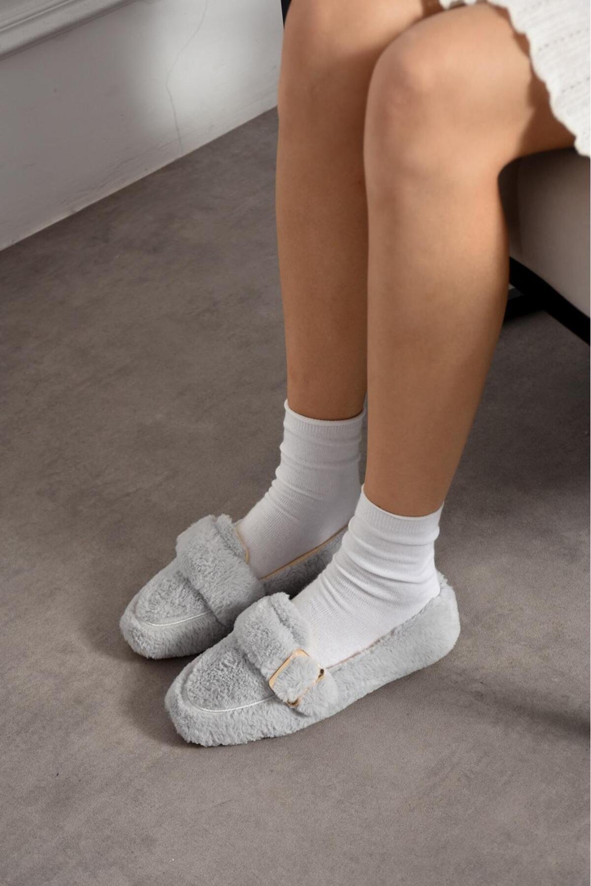 Kadın Gri Peluş Kışlık Babet Ev ve Dış Mekan Ayakkabısı Kadın Gri Peluş Kışlık Babet Ev ve Dış Mekan Ayakkabısı MD25521 40