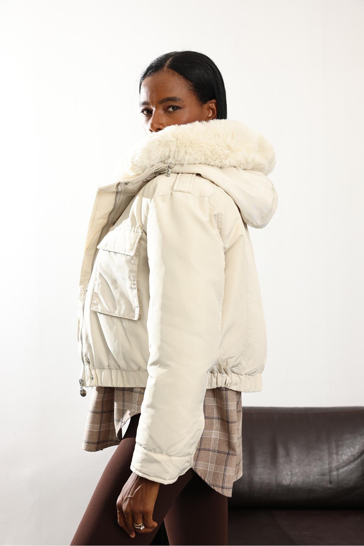 Ekru Kapüşonu Kürklü Mont D99613 Ekru Kapüşonu Kürklü Mont D99613 FW-MNT00048 40