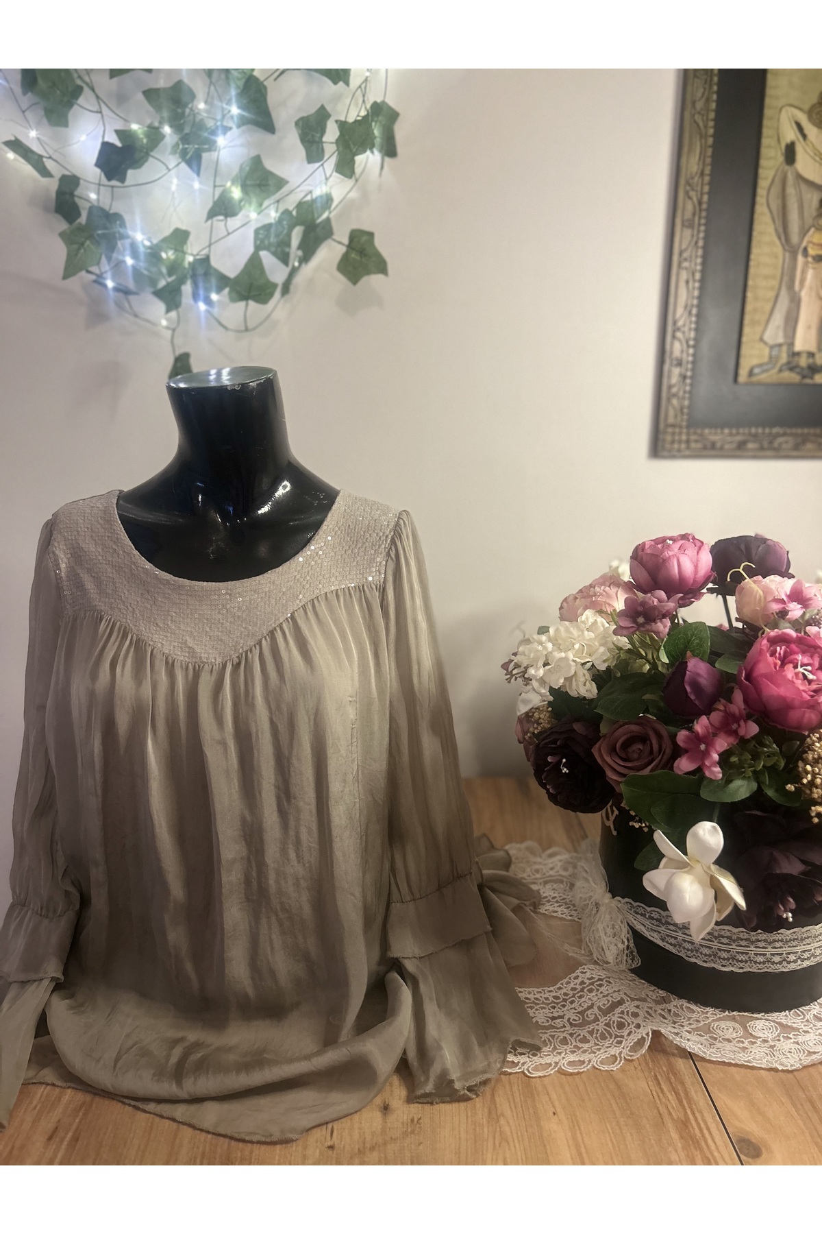 AS&SA YAKASI PUL PAYET İŞLİ KOL KATLI VİZON İPEK BLUZ AS&SA YAKASI PUL PAYET İŞLİ KOL KATLI VİZON İPEK BLUZ AS01 Standart