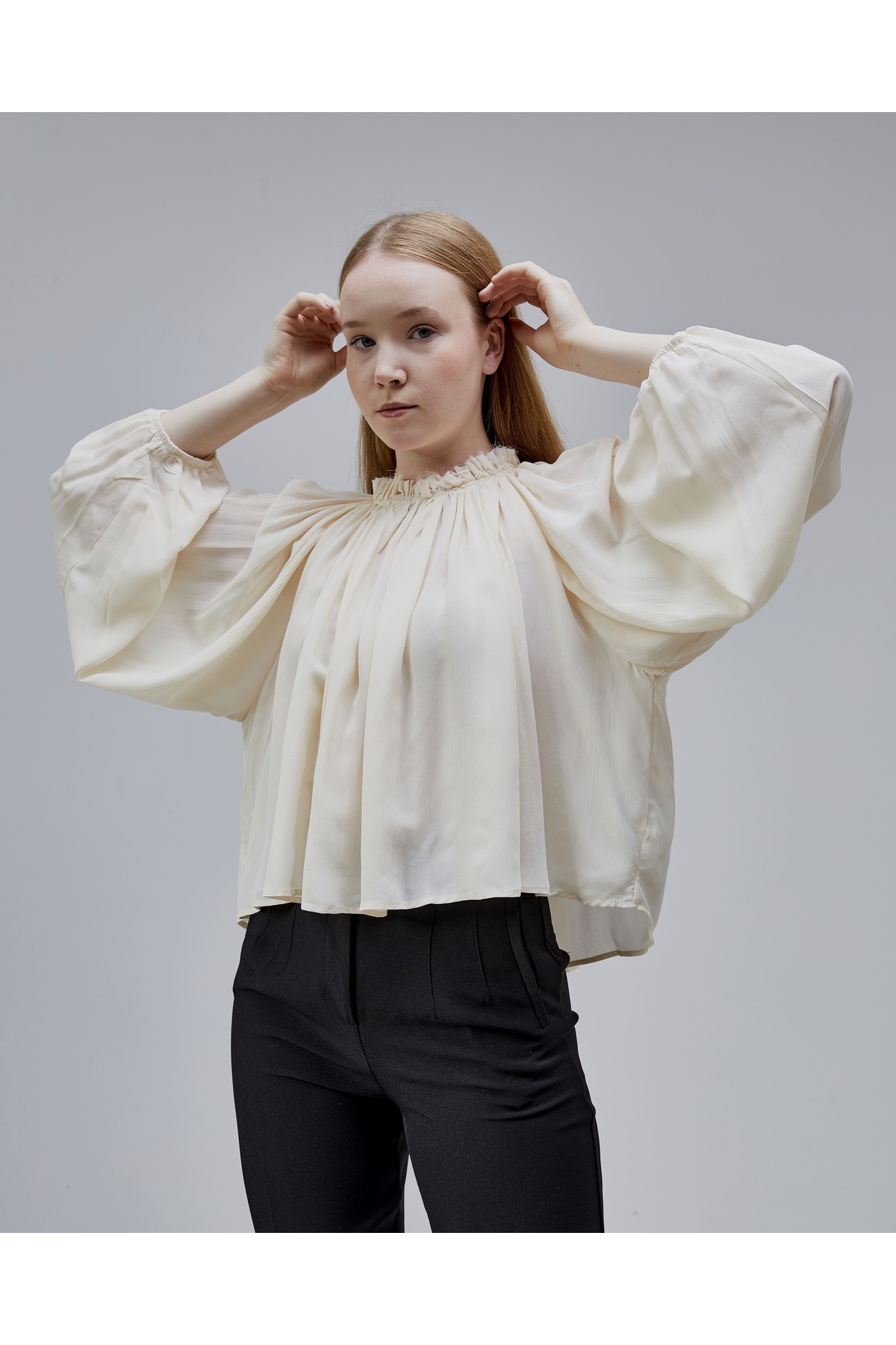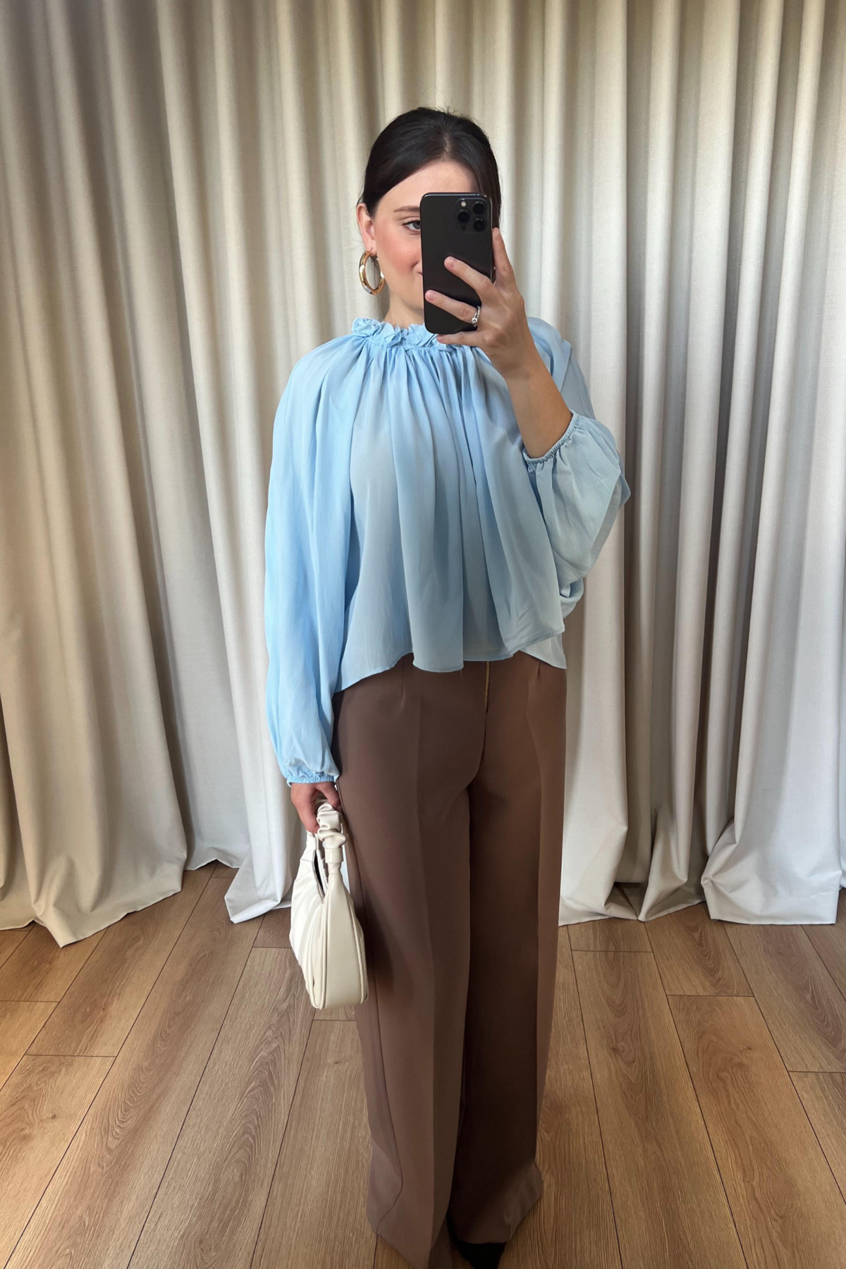 Bebe Mavisi Yakası Büzgülü Şifon Bluz Bebe Mavisi Yakası Büzgülü Şifon Bluz 260022 Standart