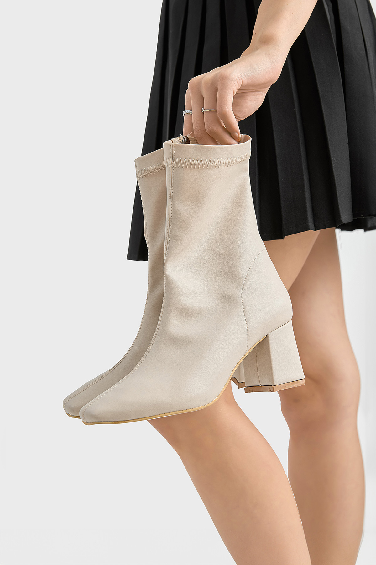 Kadın Bej TPU Taban Küt Burunlu Fermuarlı Topuklu Bot Kadın Bej TPU Taban Küt Burunlu Fermuarlı Topuklu Bot TBFZLCMC080 40