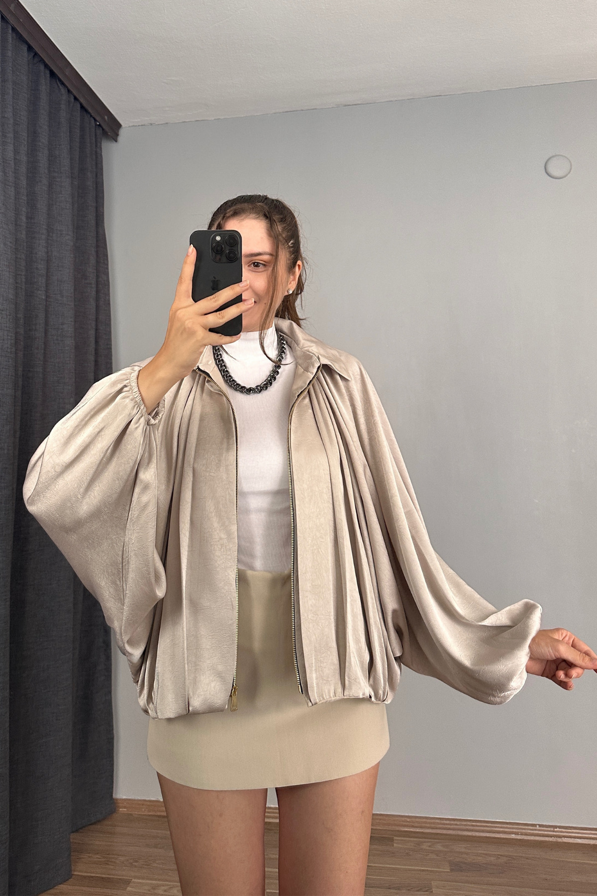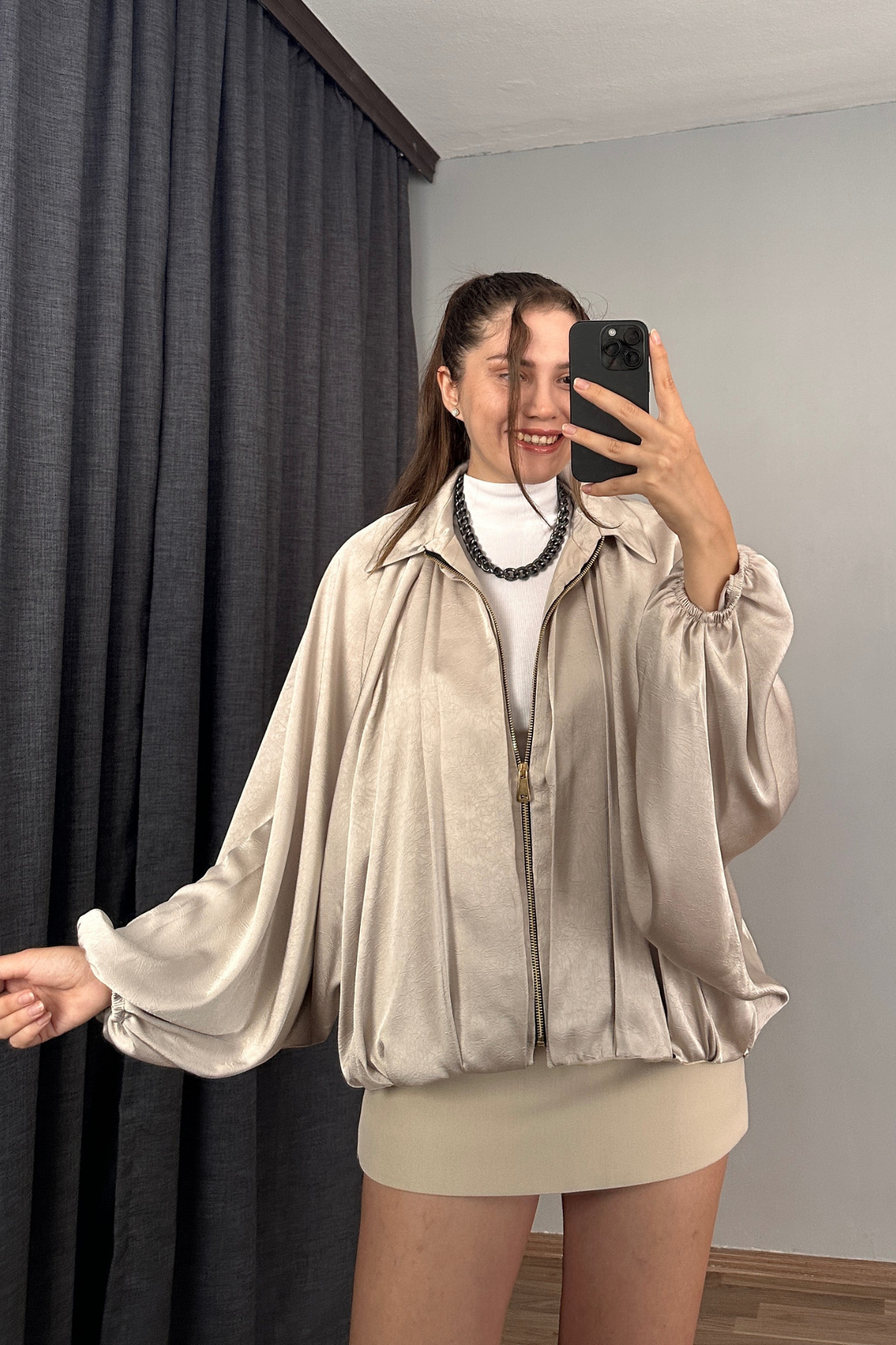 Yarasa Kol Saten Bomber Ceket Yarasa Kol Saten Bomber Ceket G1656 L