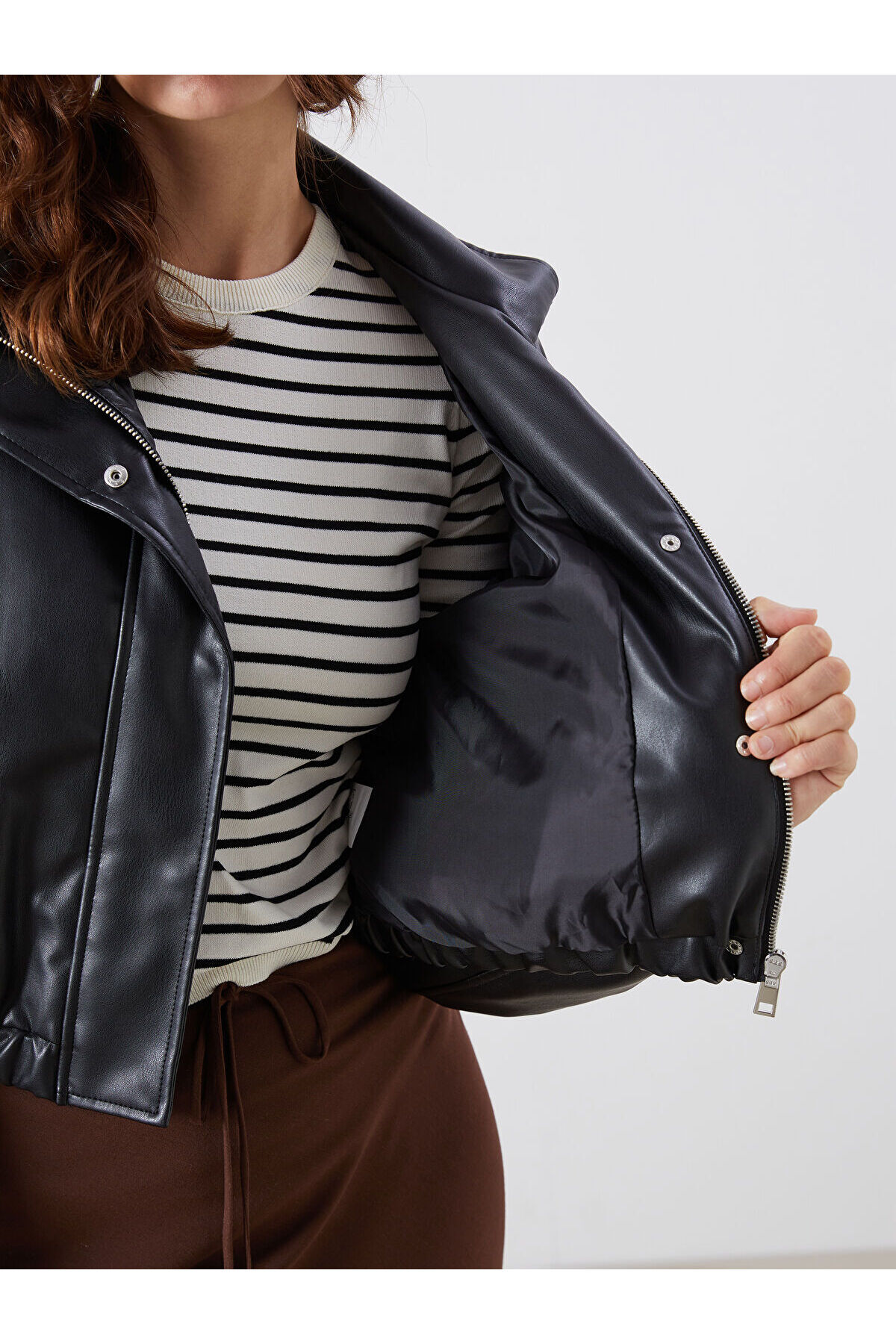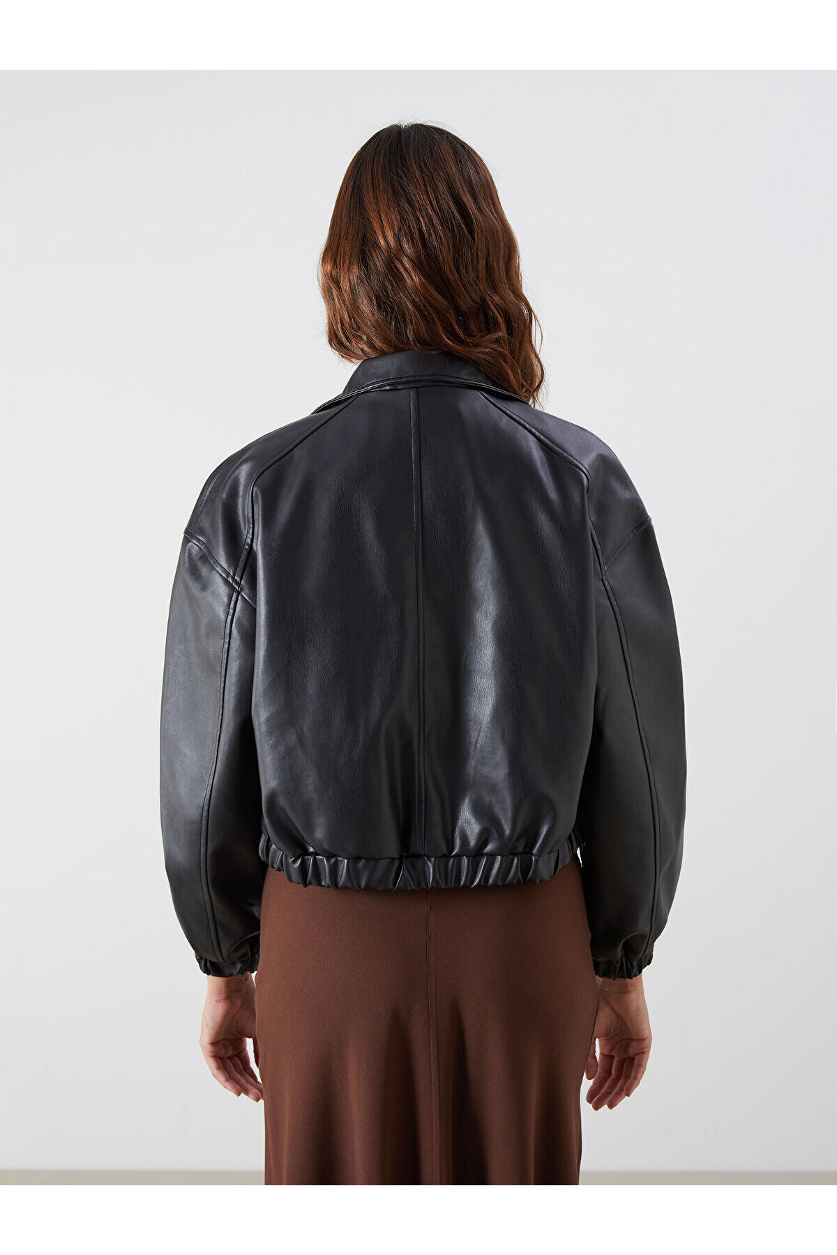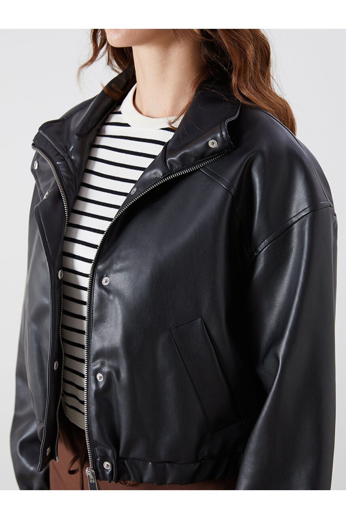 LCW Vision Siyah Dik Yaka Kadın Crop Deri Görünümlü Ceket W56987Z8 LCW Vision Siyah Dik Yaka Kadın Crop Deri Görünümlü Ceket W56987Z8 40
