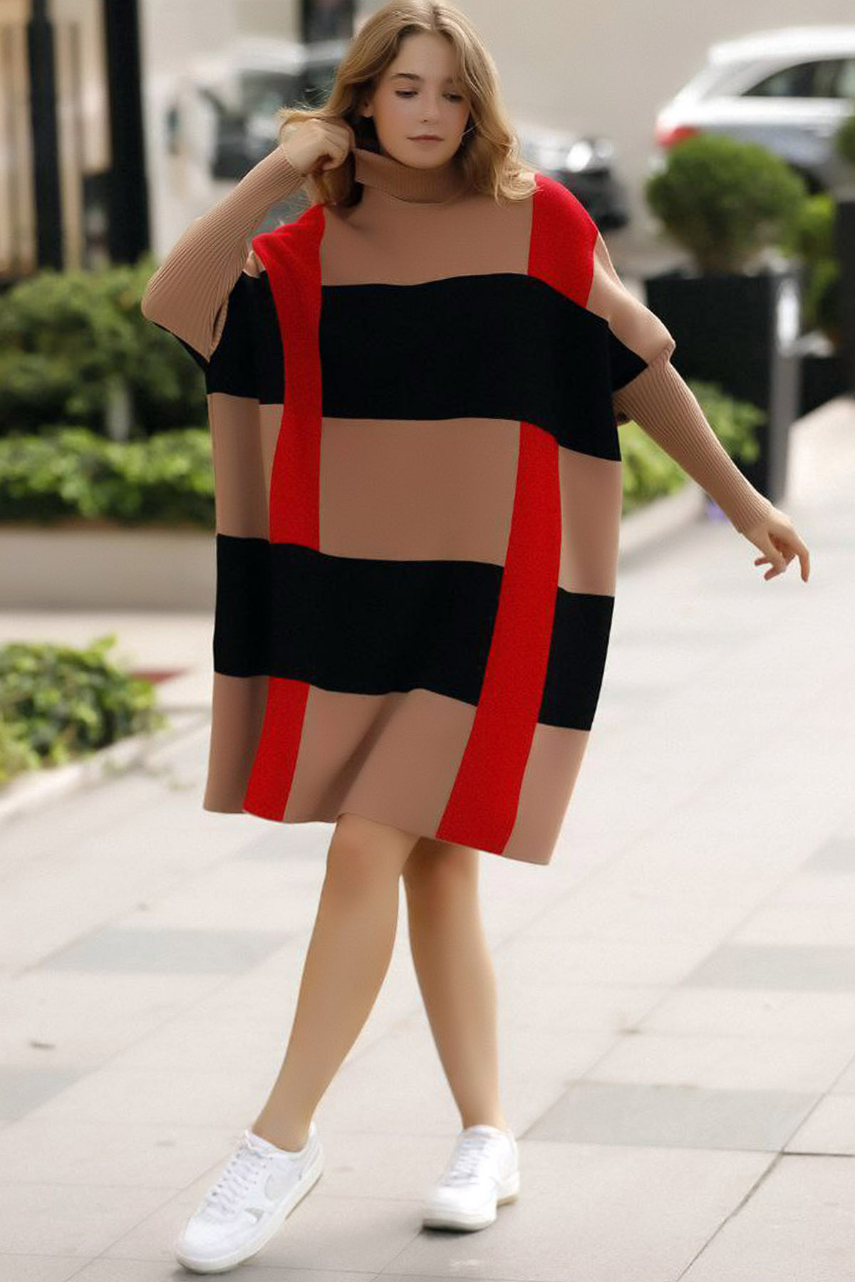Balıkçı Yakalı Uzun Kollu Rahat Bol Geniş Kalıp Renkli Ekose Desenli Kışlık Casual Triko Panço Kazak Balıkçı Yakalı Uzun Kollu Rahat Bol Geniş Kalıp Renkli Ekose Desenli Kışlık Casual Triko Panço Kazak CLLK-2741 XL