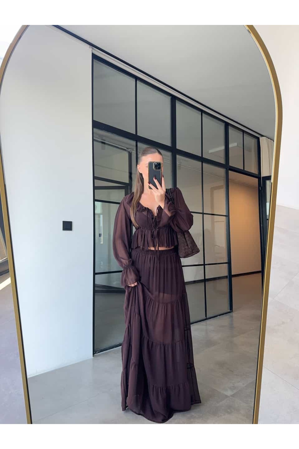 YARIM ASTARLI ACI KAHVE ŞİFON TAKIM YARIM ASTARLI ACI KAHVE ŞİFON TAKIM BB26V6911K L