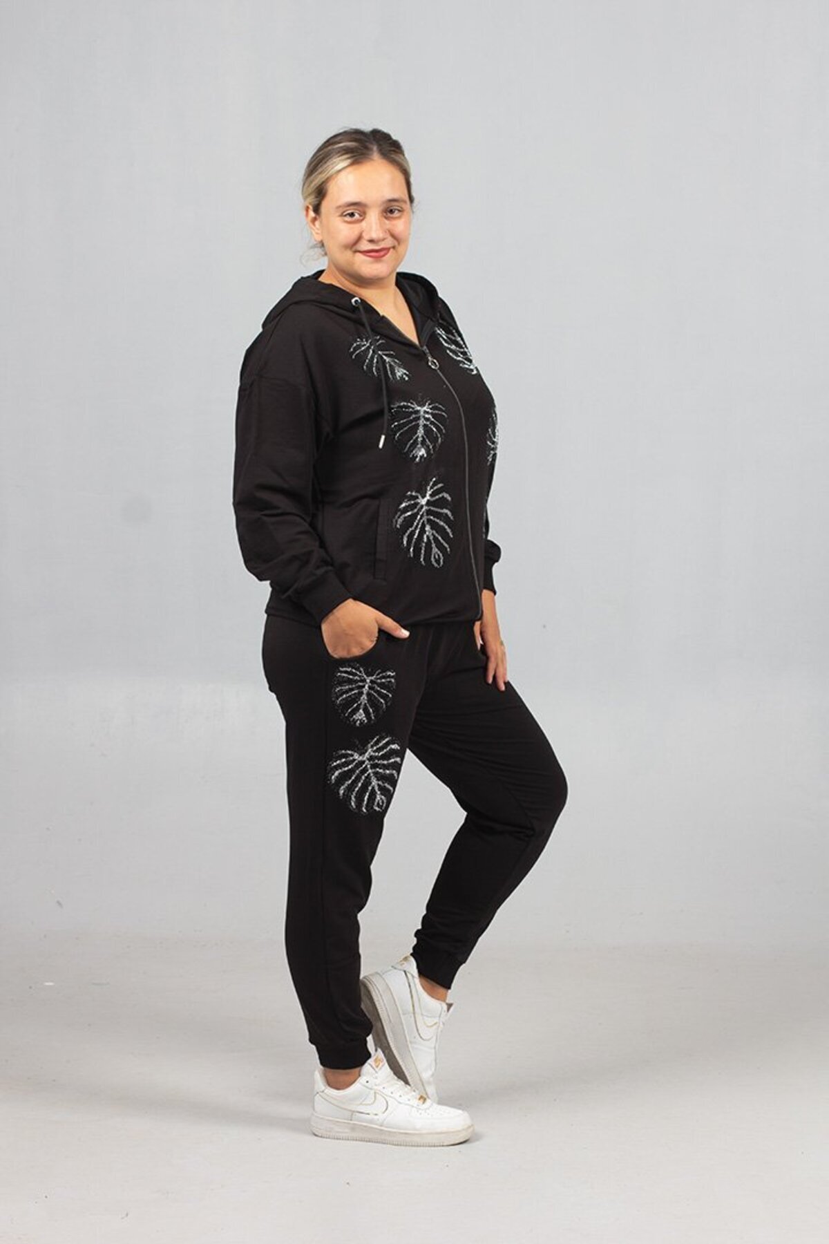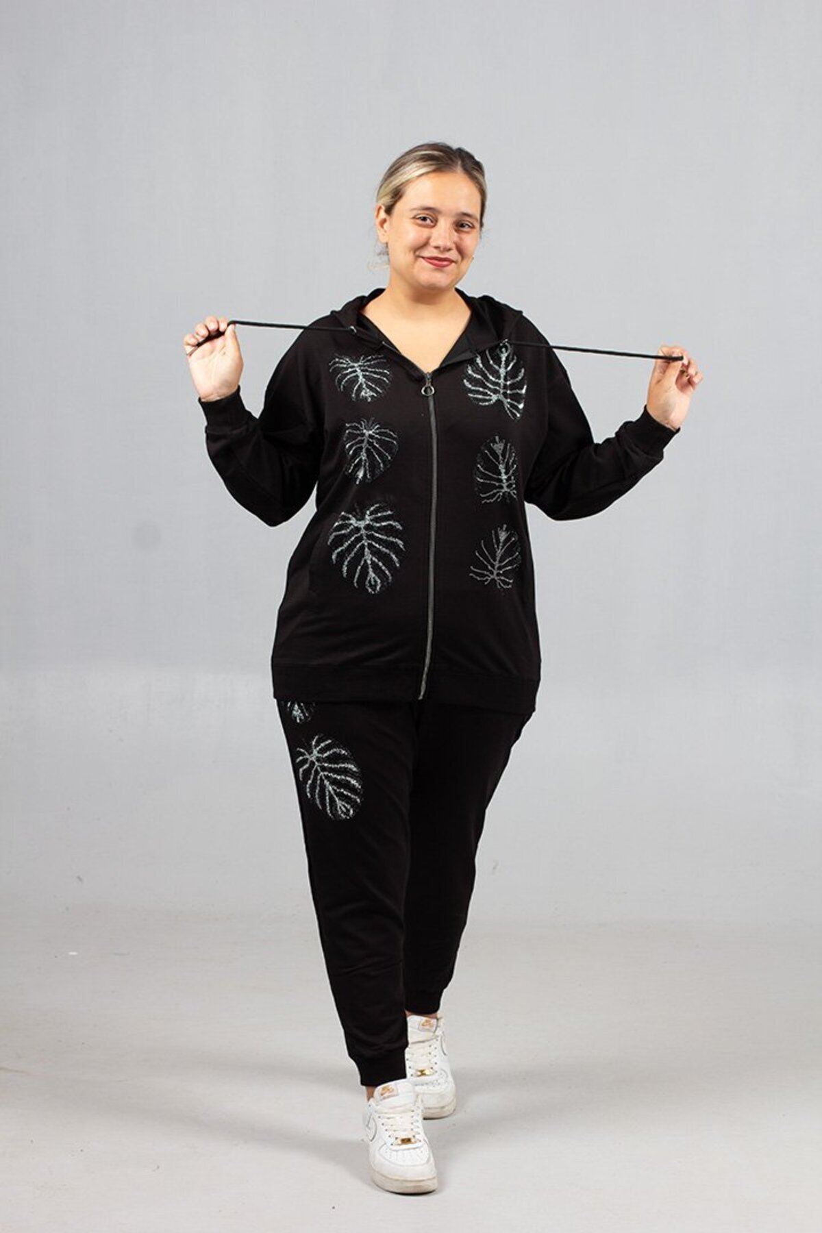 Kadın Taşlı Eşofman Takımı | Büyük Bedenlerde Işıltılı ve Rahat Şıklık Kadın Taşlı Eşofman Takımı | Büyük Bedenlerde Işıltılı ve Rahat Şıklık EF-112 40-42
