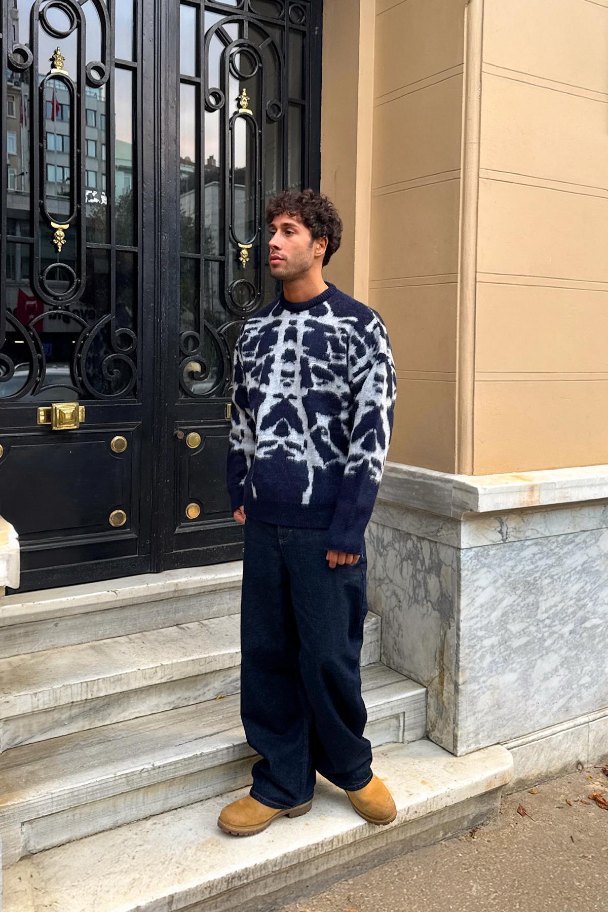 Geometrik Desen Lacivert Kazak Geometrik Desen Lacivert Kazak FLAW-312-007-002 L/XL