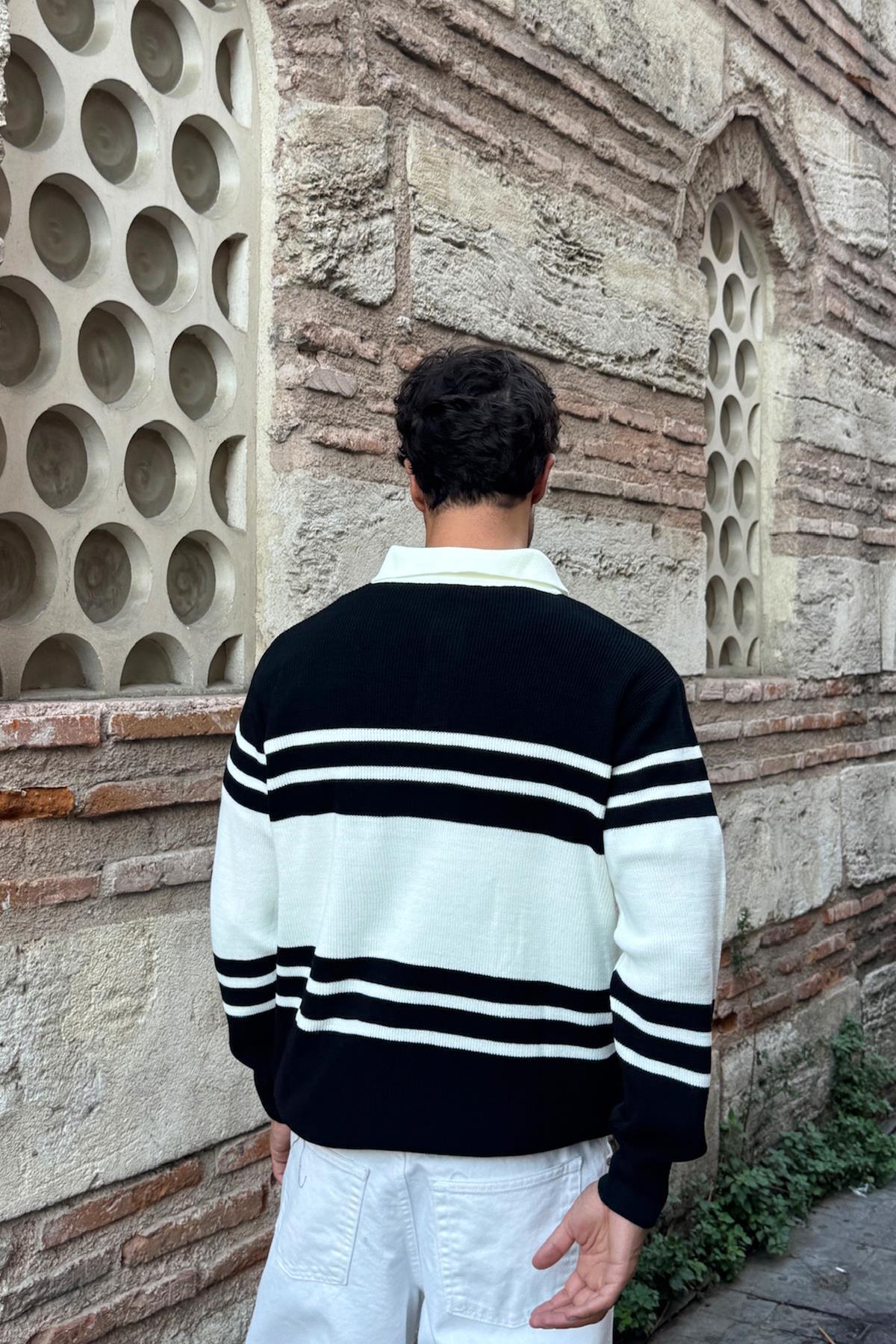 Düğmeli Polo Yaka Siyah Triko Kazak Düğmeli Polo Yaka Siyah Triko Kazak FLAW-031-007-011 XL