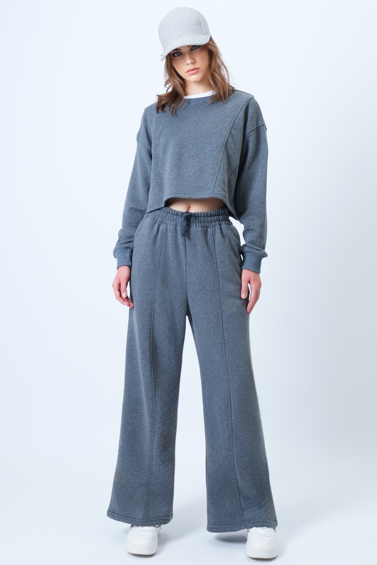 Kadın Kahverengi Özel Dikiş Detaylı Sweatshirt Ve Rahat Kesim Nervürlü Pantolon Takım ALC-X14608 Kadın Kahverengi Özel Dikiş Detaylı Sweatshirt Ve Rahat Kesim Nervürlü Pantolon Takım ALC-X14608 alcx14608 XL