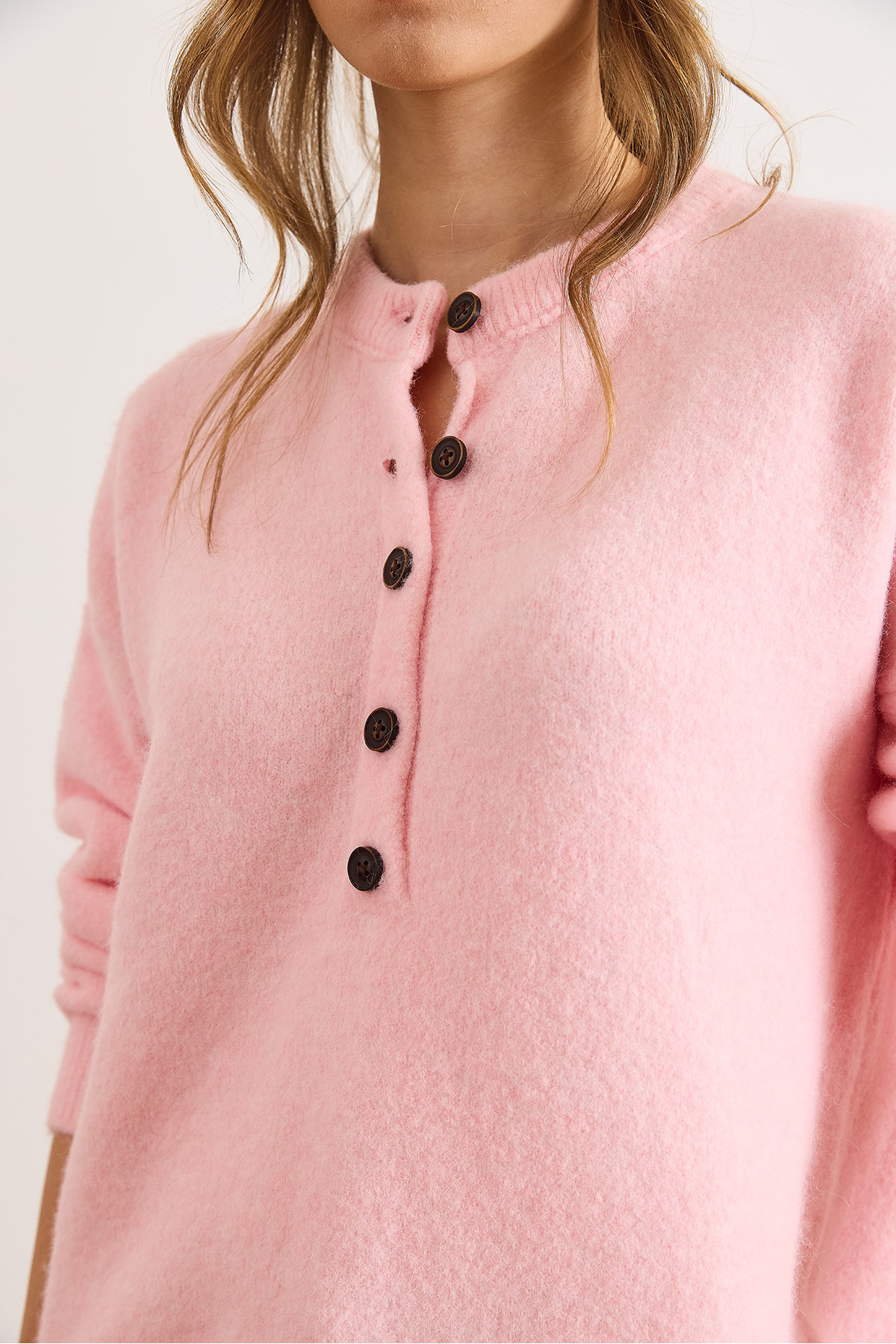 Kadın Şeker Pembe Düğmeli Yumuşak Dokulu Triko Kazak KZK-19001006 Kadın Şeker Pembe Düğmeli Yumuşak Dokulu Triko Kazak KZK-19001006 تک سایز