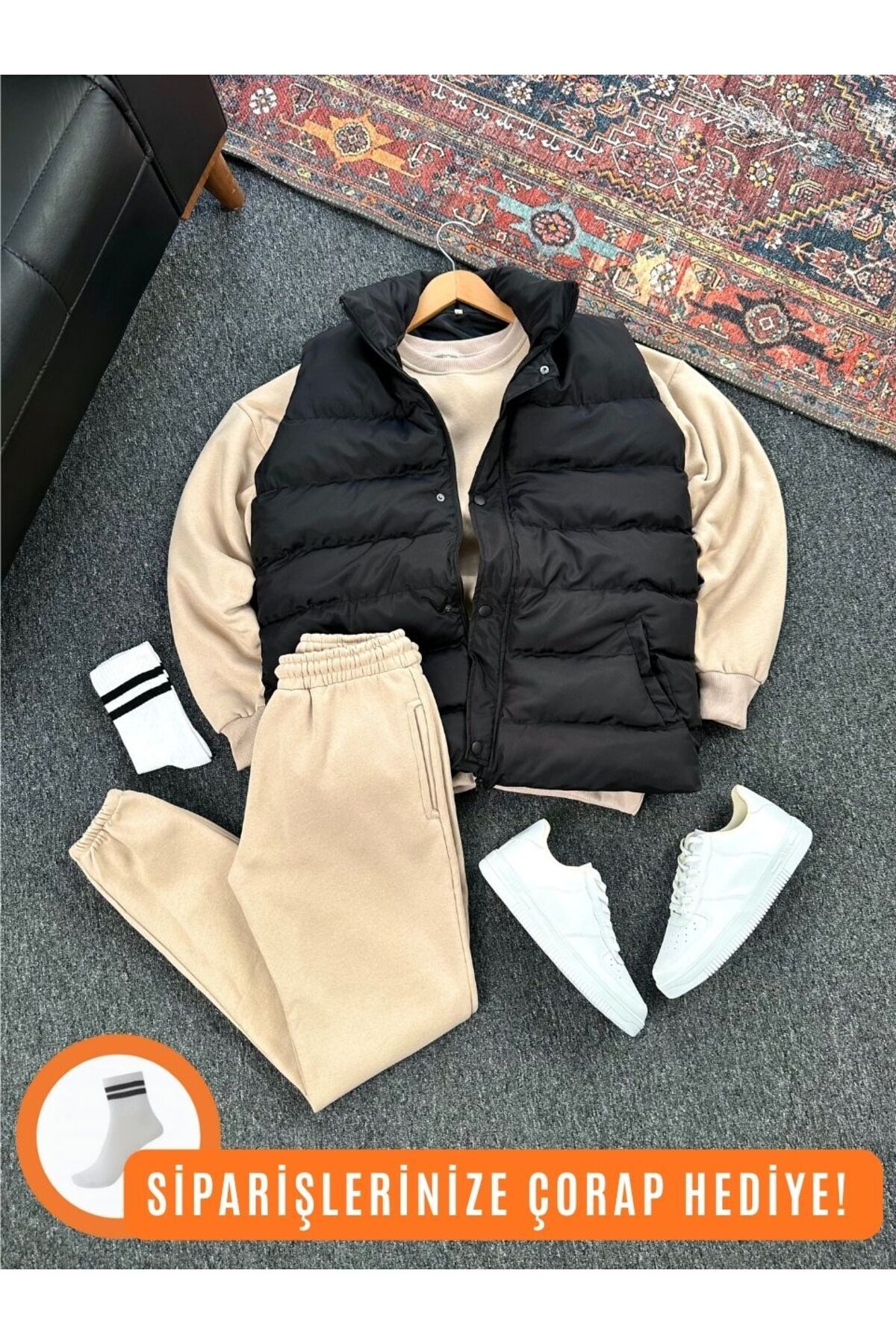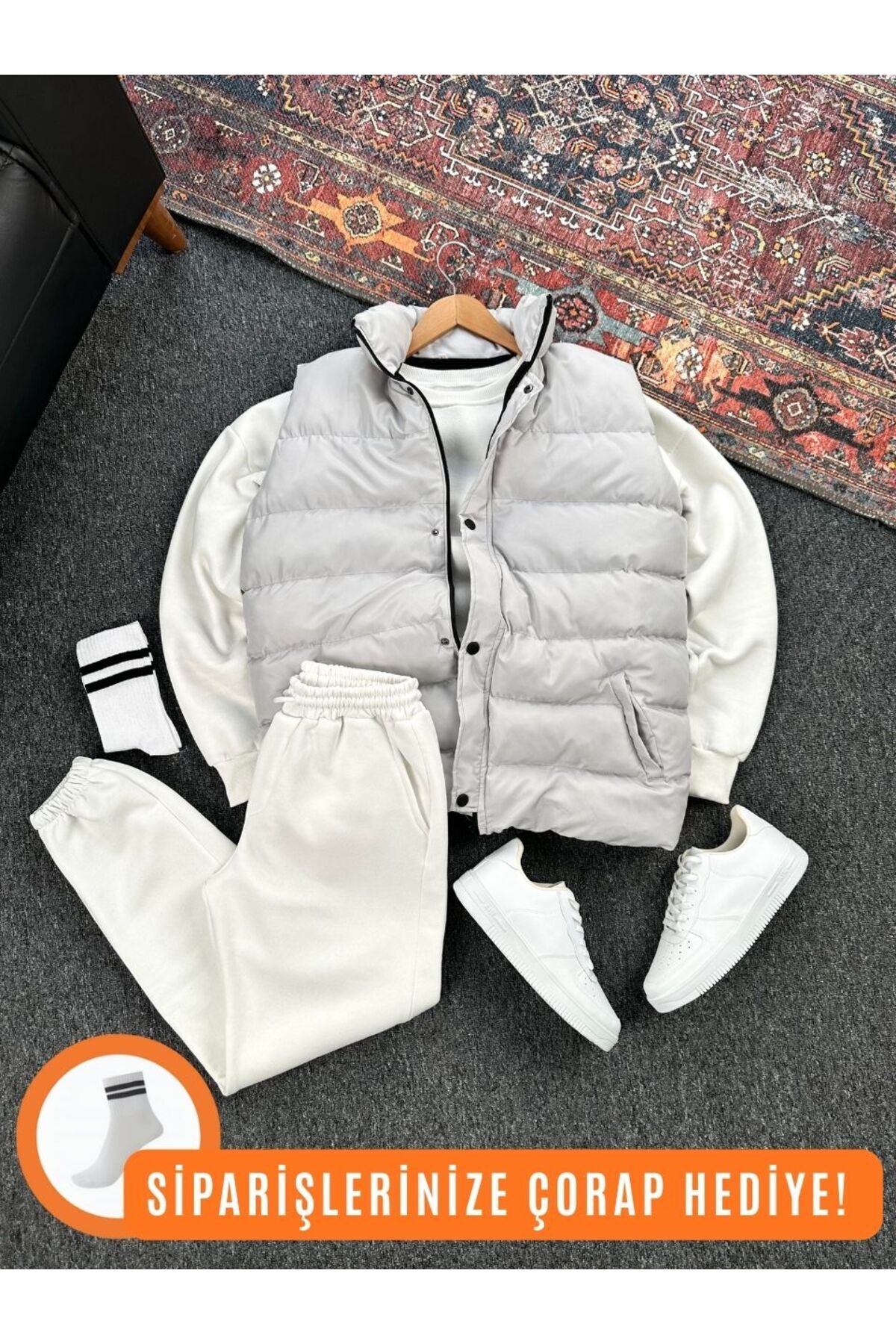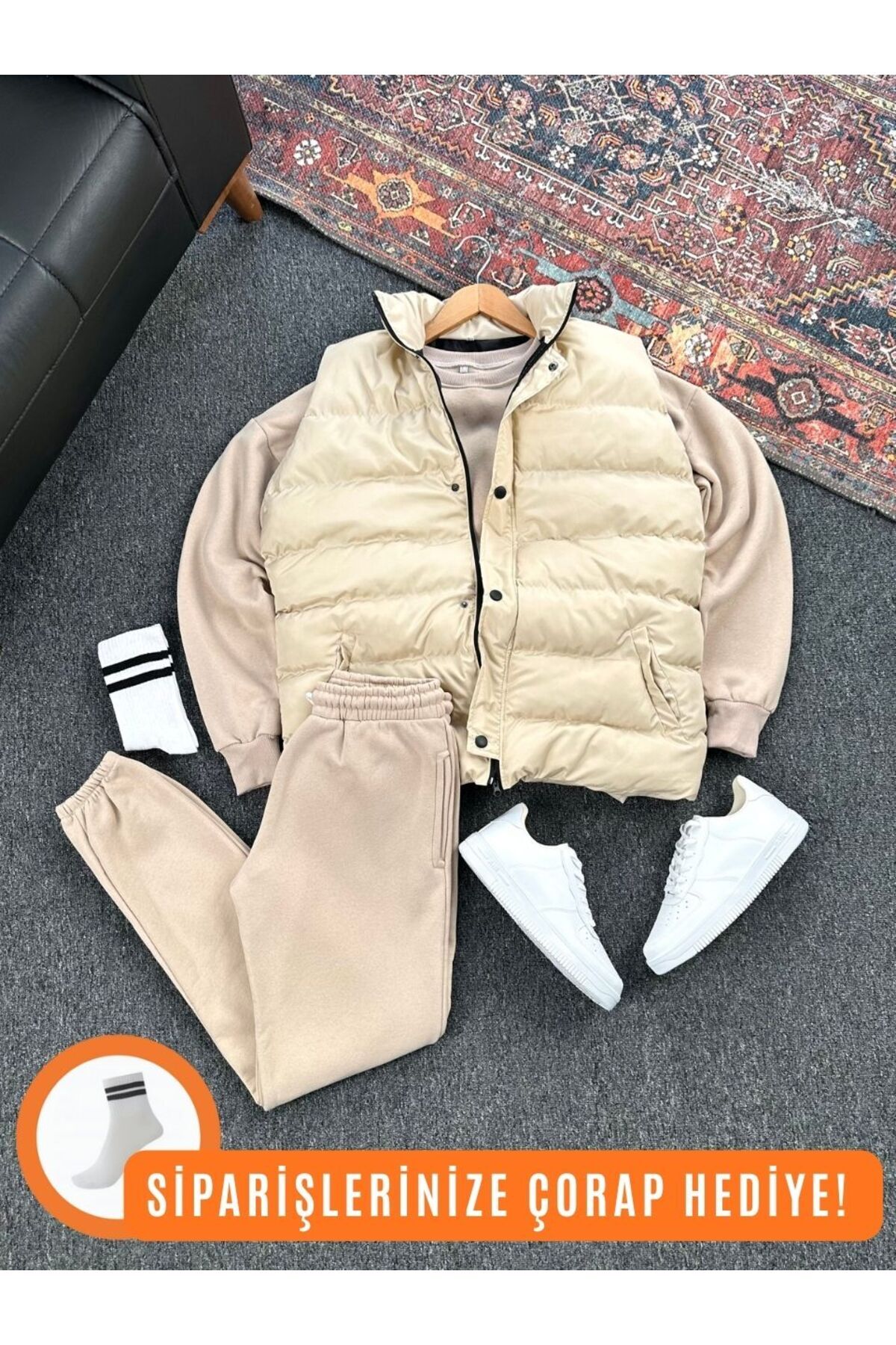 Dolgulu Şişme Yelek ve Üç Iplik Kompakt Bisiklet Yaka İçi Pamuklu Oversize Eşofman Takımı 3'lü Set Dolgulu Şişme Yelek ve Üç Iplik Kompakt Bisiklet Yaka İçi Pamuklu Oversize Eşofman Takımı 3'lü Set TM-DSYVUIET XL