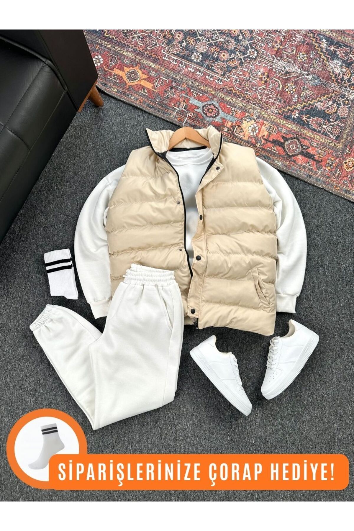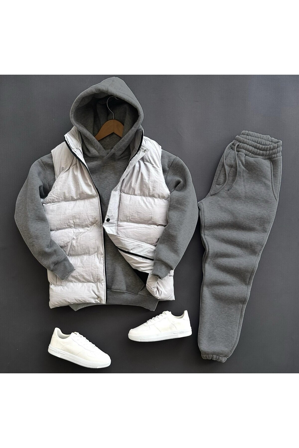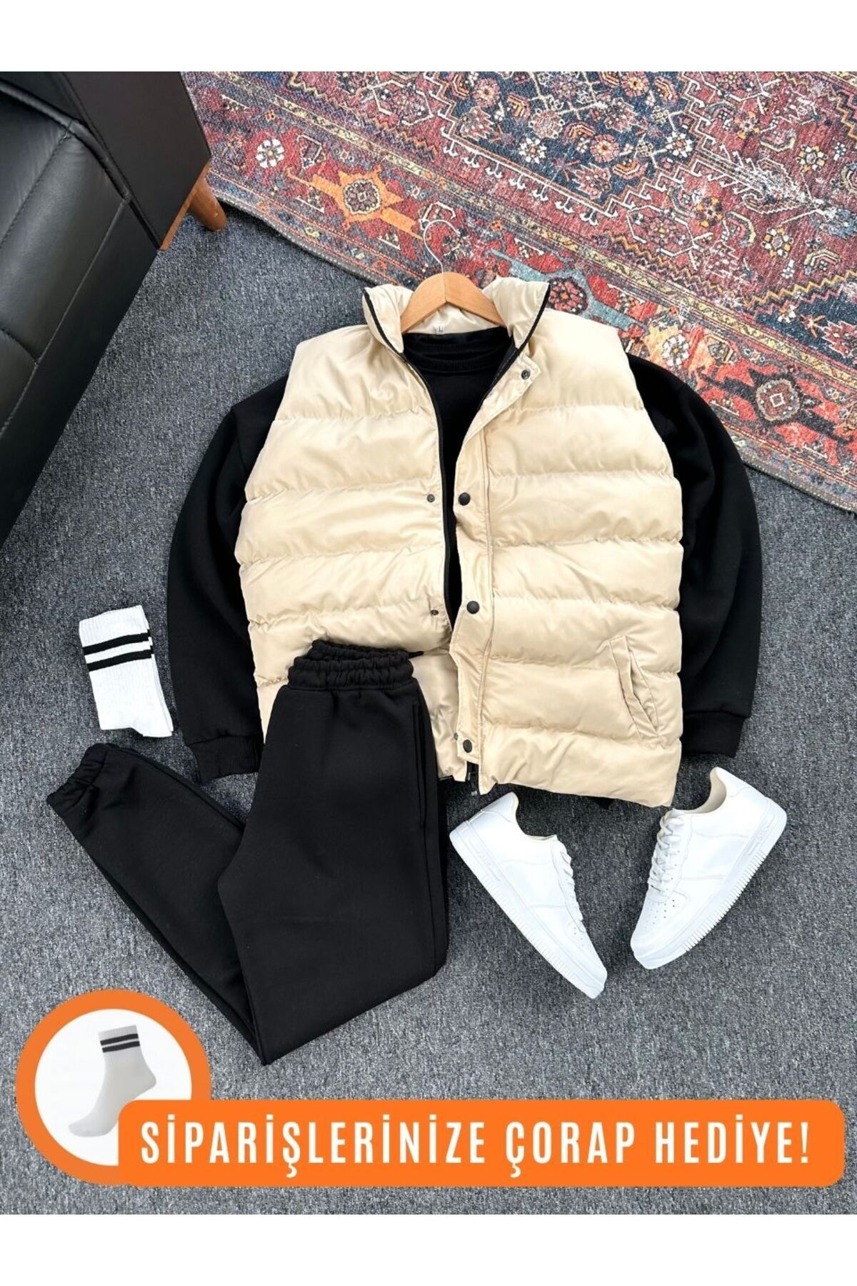 Dolgulu Şişme Yelek ve Üç Iplik Kompakt Bisiklet Yaka İçi Pamuklu Oversize Eşofman Takımı 3'lü Set Dolgulu Şişme Yelek ve Üç Iplik Kompakt Bisiklet Yaka İçi Pamuklu Oversize Eşofman Takımı 3'lü Set TM-DSYVUIET XL