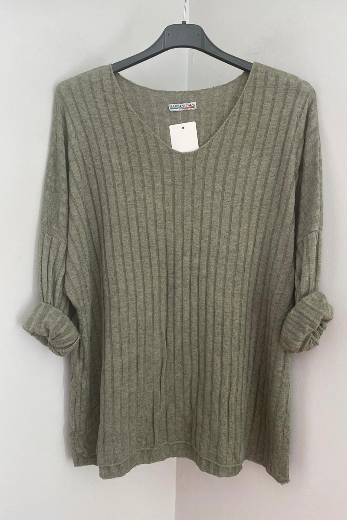 Kadın İtalyan Haki V Yakalı Yarasa Kol Çizgi Desenli Salaş Triko Bluz Kadın İtalyan Haki V Yakalı Yarasa Kol Çizgi Desenli Salaş Triko Bluz 2508713-ITALYAN Standart