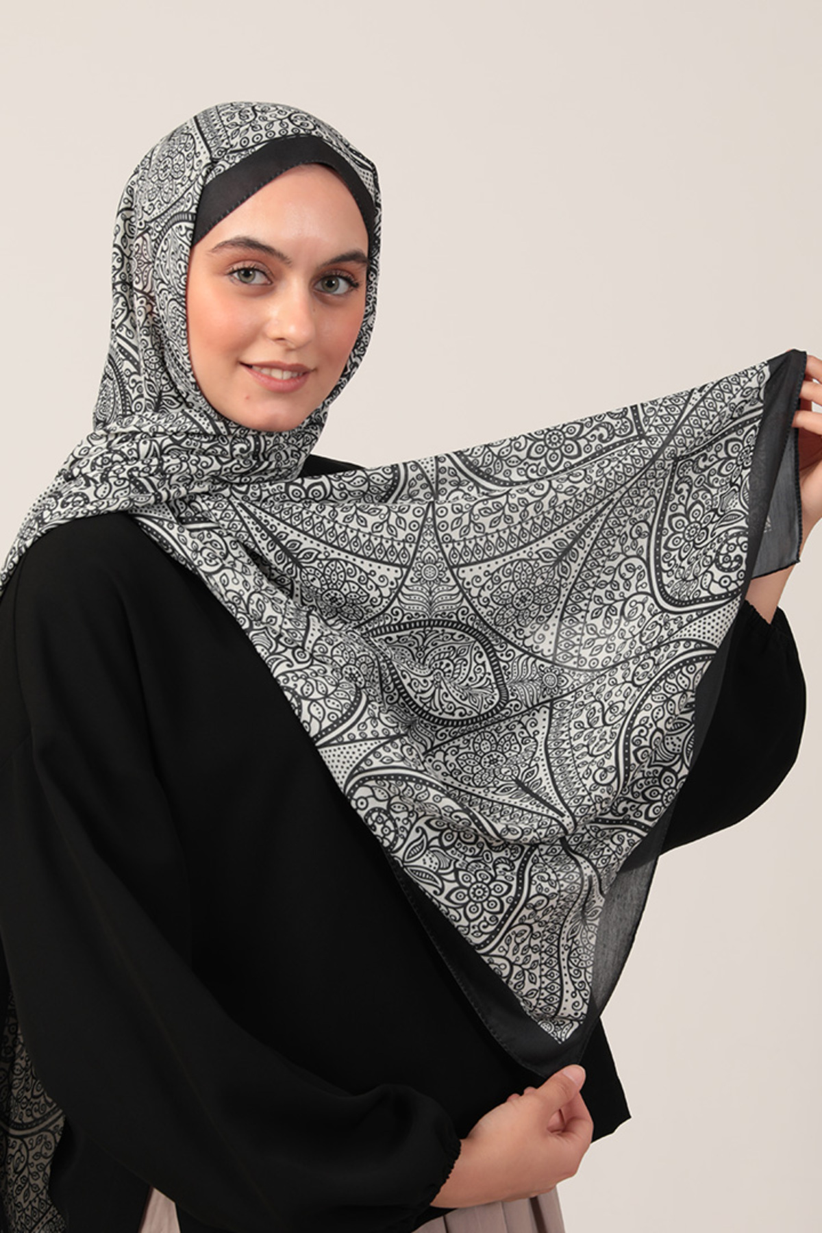 Pamuk İpek Şal - Sarmaşık Desen - Siyah Beyaz Pamuk İpek Şal - Sarmaşık Desen - Siyah Beyaz c5438d6f-c1f7-557b-9bdd-88548272816d 70 x 200