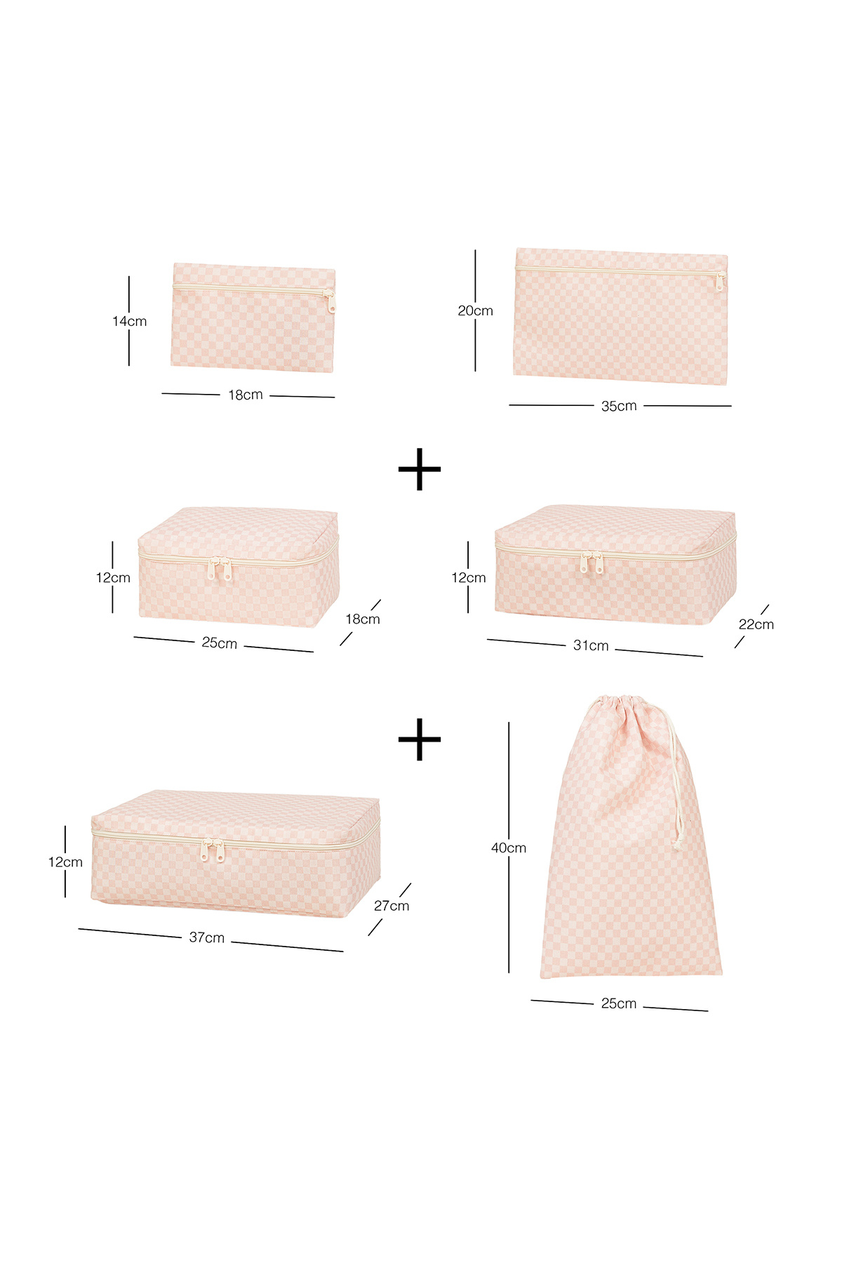 6'lı Pembe Dama Pamuklu Valiz Düzenleyici Bavul İçi Organizer Set, Seyahat Hurcu 6'lı Pembe Dama Pamuklu Valiz Düzenleyici Bavul İçi Organizer Set, Seyahat Hurcu OCH.017.OTR.009 تک سایز