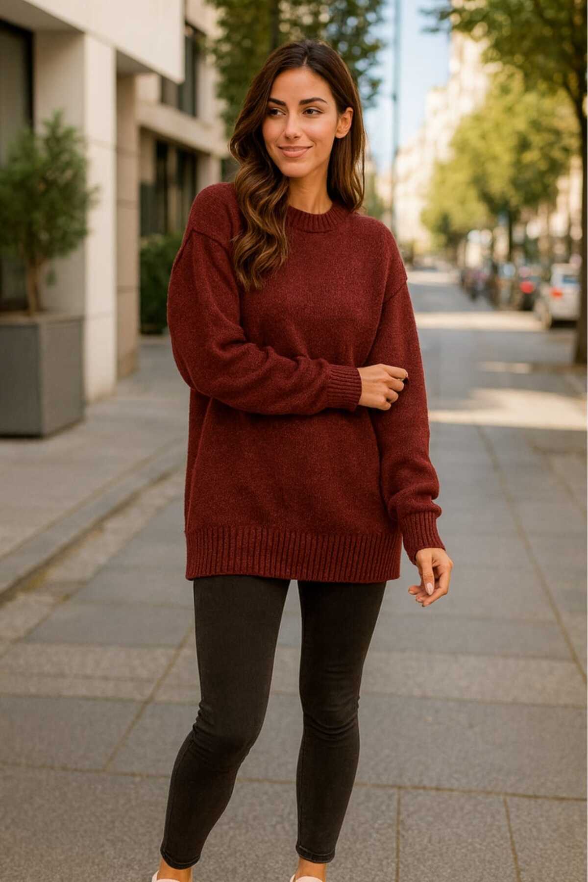 Oversize Rahat Kalıp renkli Bisiklet Yaka Triko Kazak Oversize Rahat Kalıp renkli Bisiklet Yaka Triko Kazak mlk-pembe XL