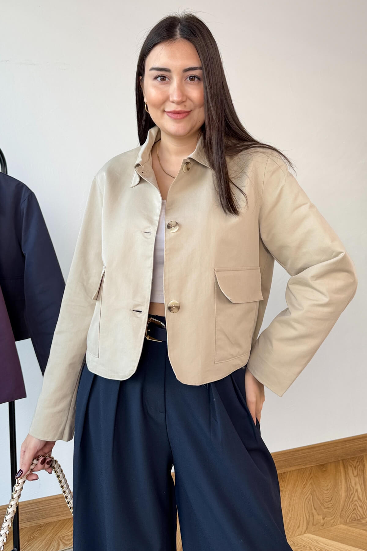 CKT-0163 Acı Kahve Astarlı Gabardin Cepli Crop Ceket CKT-0163 Acı Kahve Astarlı Gabardin Cepli Crop Ceket L