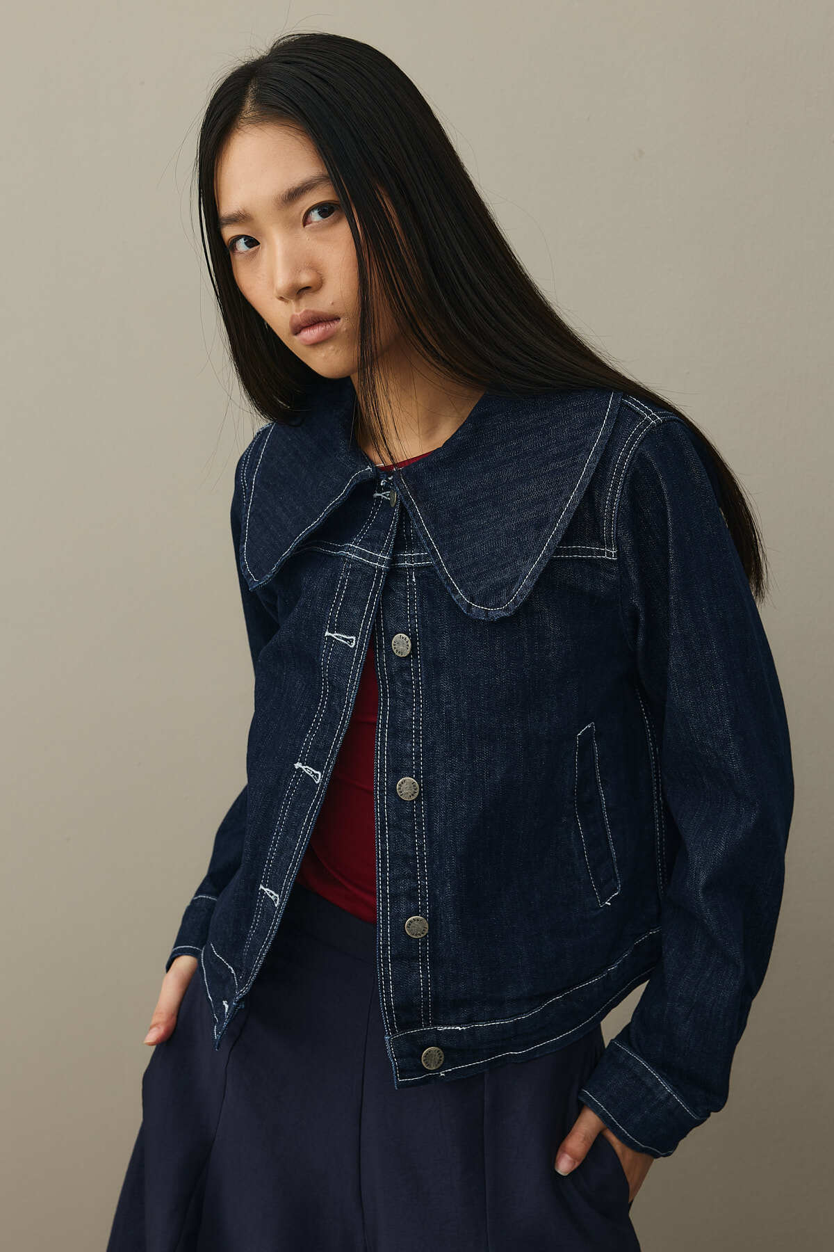 Yuvarlak Yakalı Denim Ceket Koyu Mavi Yuvarlak Yakalı Denim Ceket Koyu Mavi FHR26K3100000266 40/42