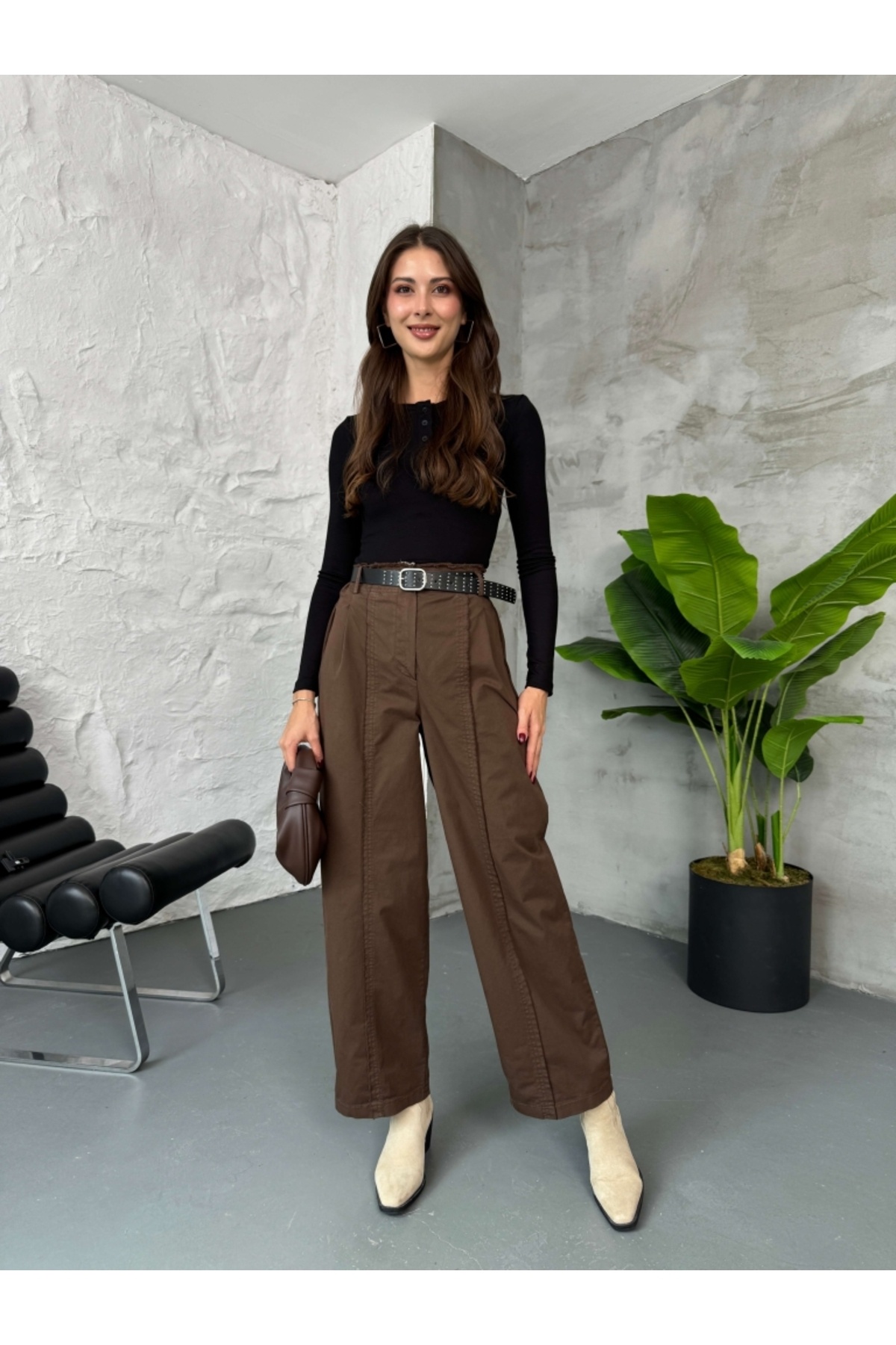 Kahve Zımba Kemerli Dikiş Detaylı Pantolon Kahve Zımba Kemerli Dikiş Detaylı Pantolon 51208 L/XL
