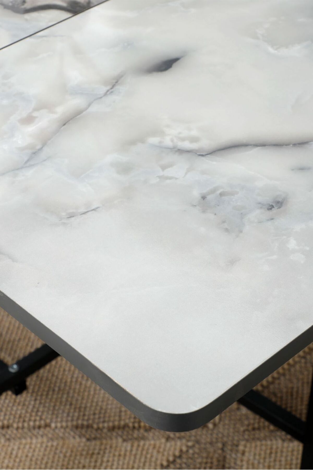 Ogat Serisi 1.Sınıf Beyaz Mermer Desen Açılabilir Tekerlekli Masa Yemek Masası Siyah Metal Ayak Ogat Serisi 1.Sınıf Beyaz Mermer Desen Açılabilir Tekerlekli Masa Yemek Masası Siyah Metal Ayak 22OGAT01SYH