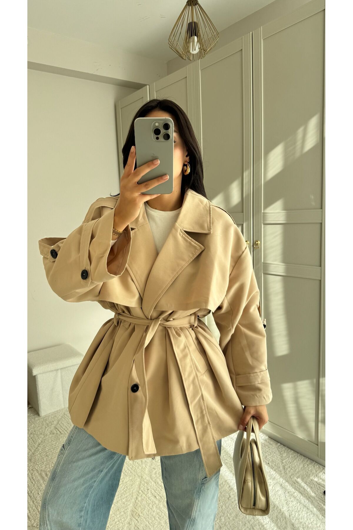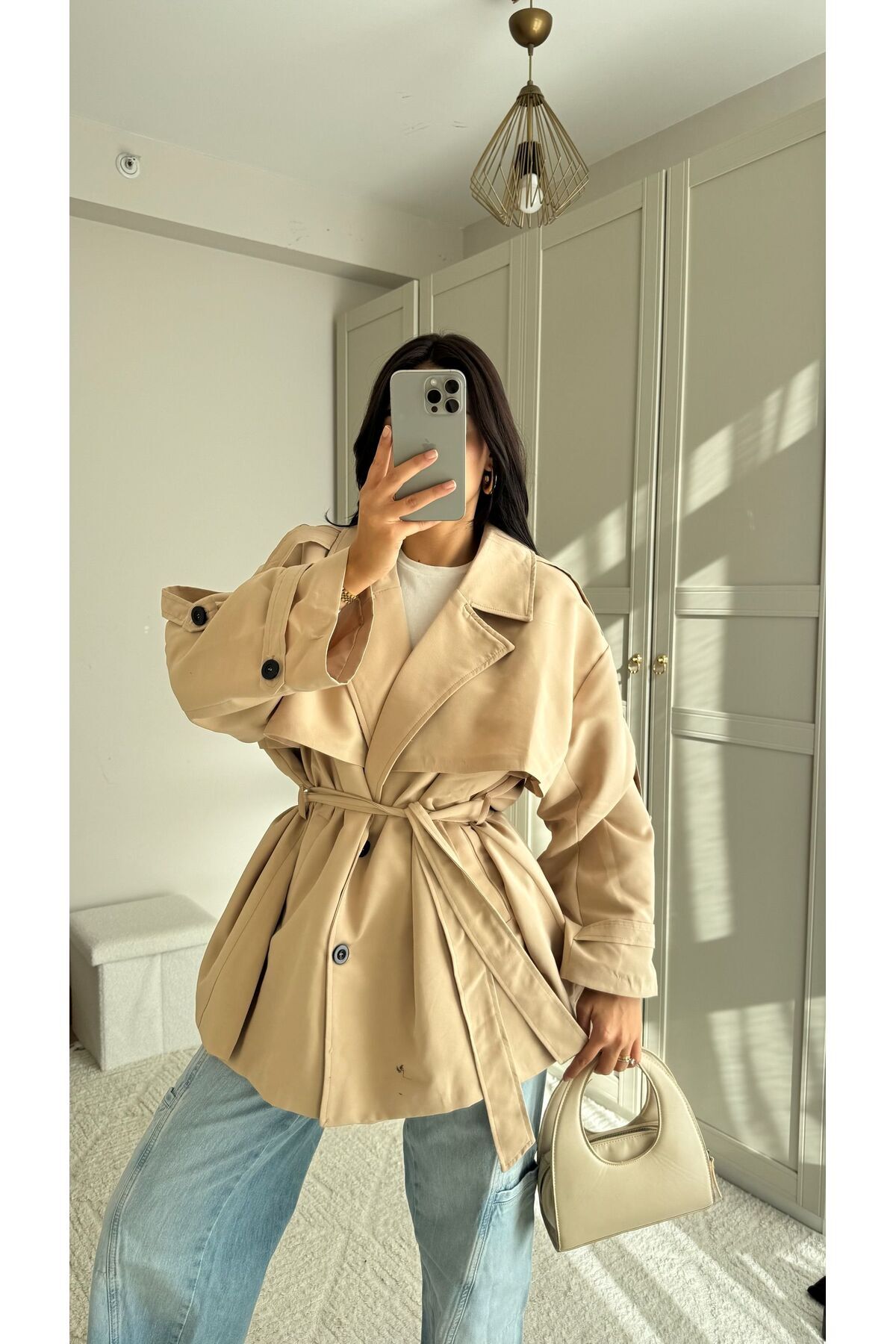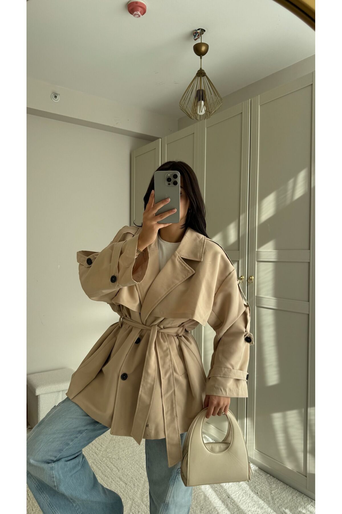Jena Oversize Kuşaklı Düğmeli Trençkot 2635 Jena Oversize Kuşaklı Düğmeli Trençkot 2635 2326 Standart