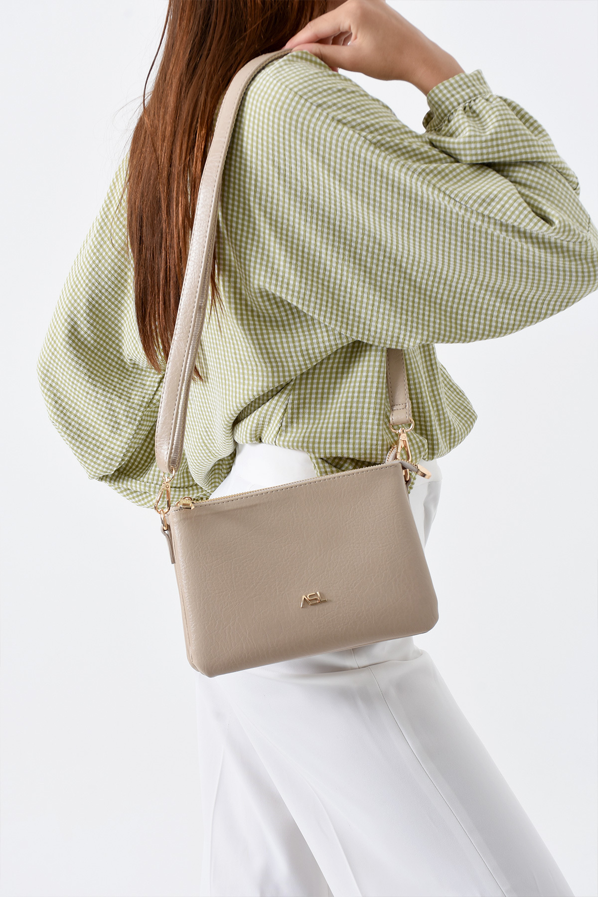 Kadın Bej Renk Çok Bölmeli Çapraz Çanta, Kaliteli Deri Günlük Kullanıma Uygun Şık Omuz Çantası Kadın Bej Renk Çok Bölmeli Çapraz Çanta, Kaliteli Deri Günlük Kullanıma Uygun Şık Omuz Çantası AC-733 تک سایز