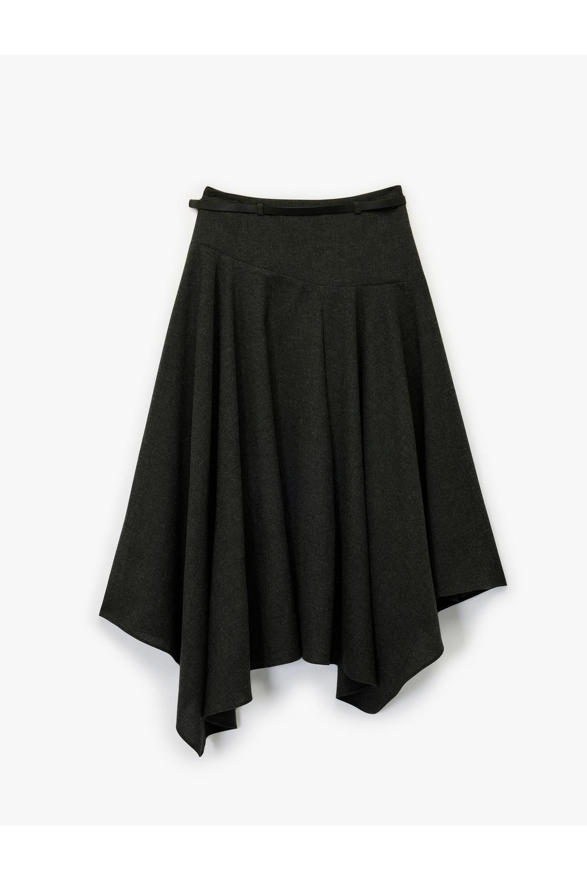 Asimetrik Uçlu Kemer Detaylı Volanlı Yün Karışımlı Kloş Midi Etek Asimetrik Uçlu Kemer Detaylı Volanlı Yün Karışımlı Kloş Midi Etek 6WAK70117UW 42
