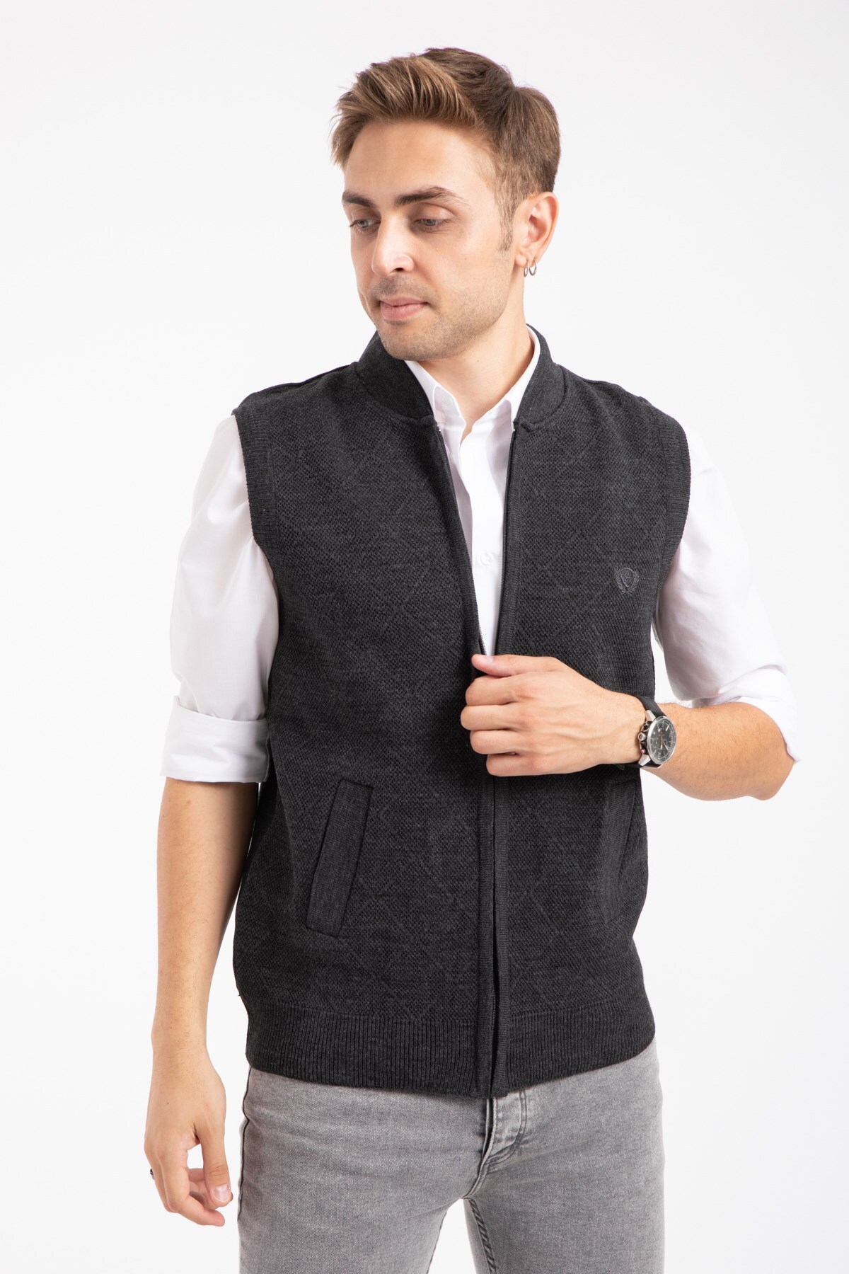 Erkek Triko Polo Yaka Fermuarlı Cepli Desenli Yelek Erkek Triko Polo Yaka Fermuarlı Cepli Desenli Yelek 6903012444 XL