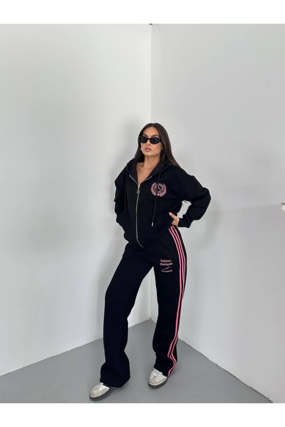 Realisim 3 İplik Kapüşonlu Şeritli Fermuarlı Geniş Paça Takım Realisim 3 İplik Kapüşonlu Şeritli Fermuarlı Geniş Paça Takım AD1210061 L