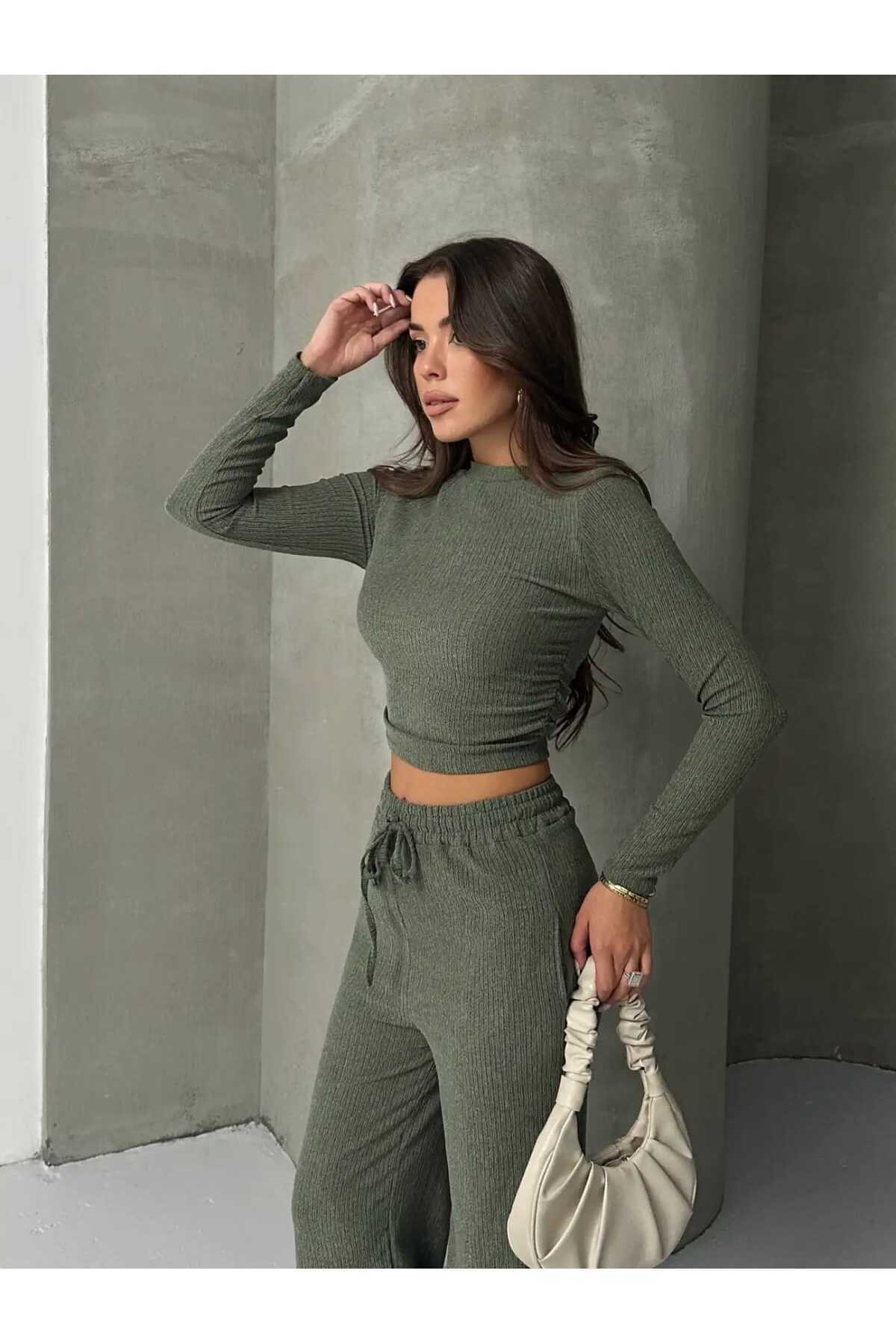 Kadın Uzun Kollu Crop ve Bol Paça Pantolon Takım Kadın Uzun Kollu Crop ve Bol Paça Pantolon Takım 4070 XL