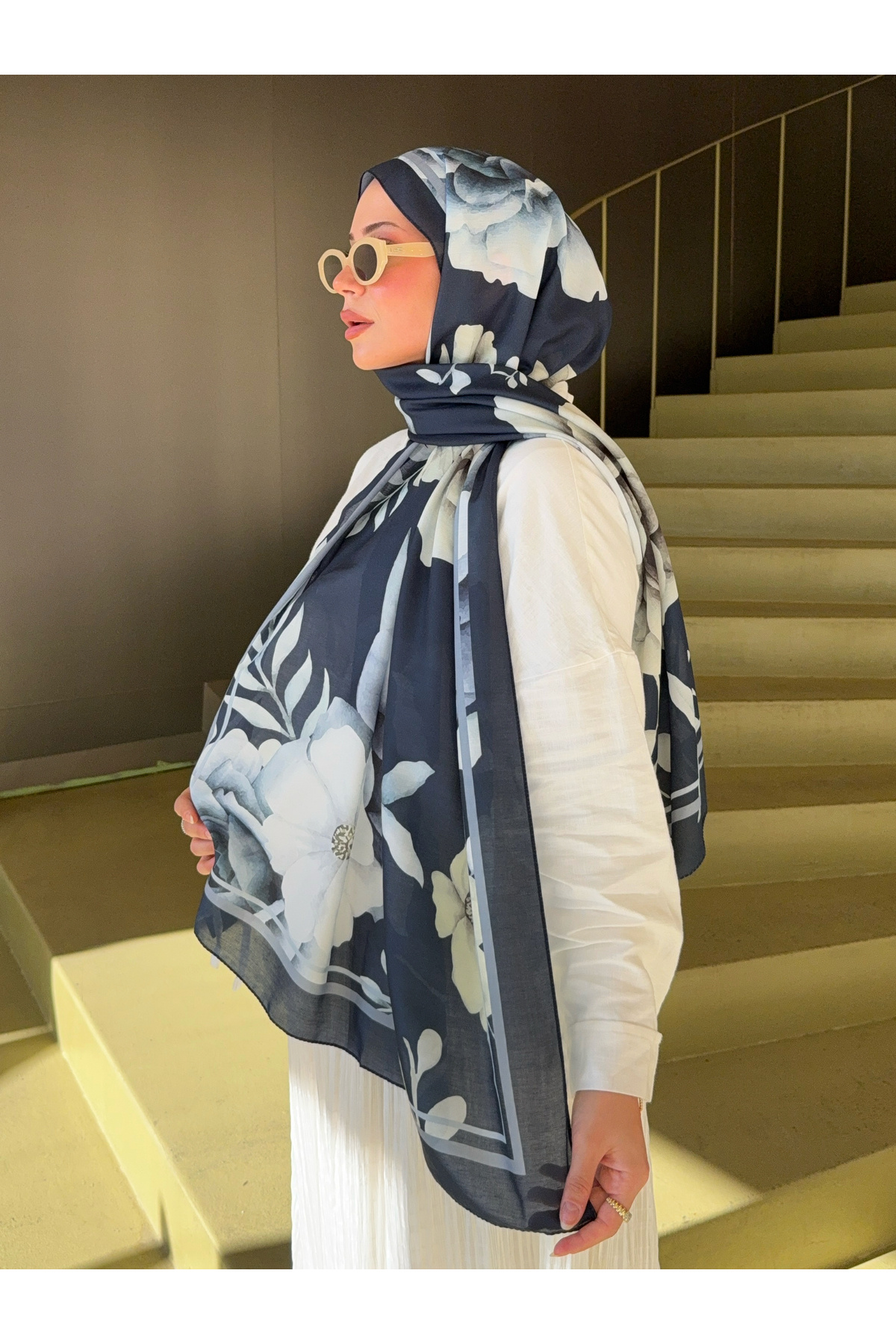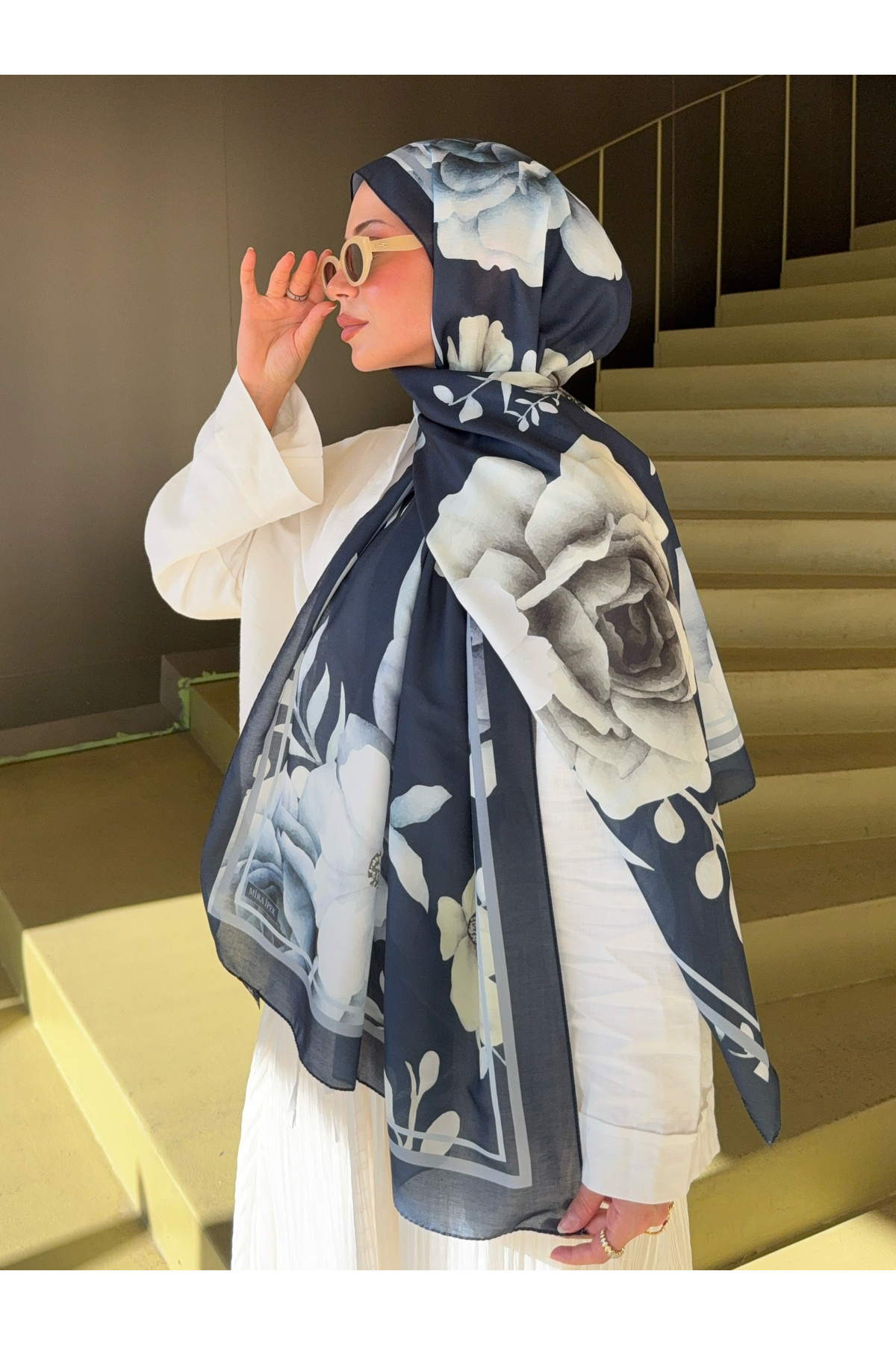 Desenli Pamuk Soft Şal İlham Serisi Koyu Lacivert Gül ps107 Desenli Pamuk Soft Şal İlham Serisi Koyu Lacivert Gül ps107 ilhamserisi1 75 x 180
