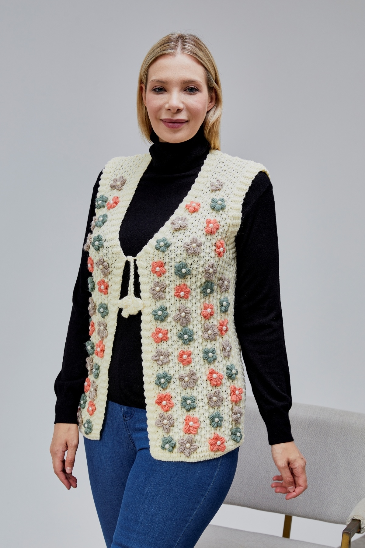 Orta Yaş Kadın Özel Tasarım İncili Renkli Papatya Çiçekli Anne Yelek Orta Yaş Kadın Özel Tasarım İncili Renkli Papatya Çiçekli Anne Yelek JİNX203 تک سایز