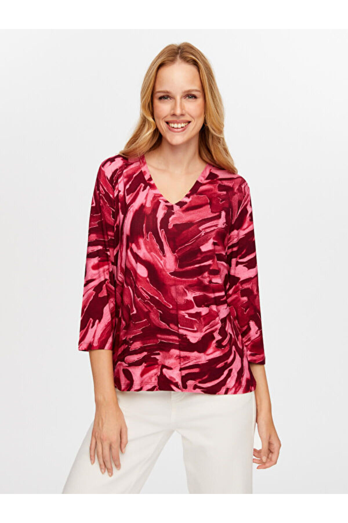Soyut Desen 3/4 Kol V Yaka Tshirt W26TSH080 Soyut Desen 3/4 Kol V Yaka Tshirt W26TSH080 UW26TSH080 XL