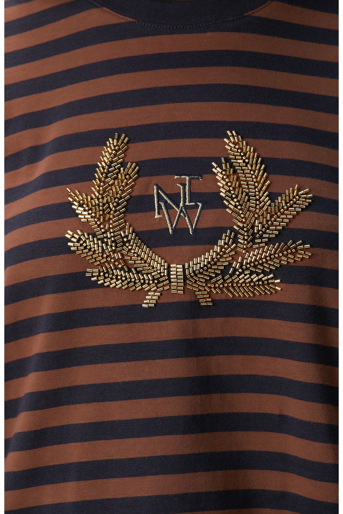 Lacivert Kahverengi Boncuk Nakışlı Çizgili T-shirt Lacivert Kahverengi Boncuk Nakışlı Çizgili T-shirt 1096787 XL