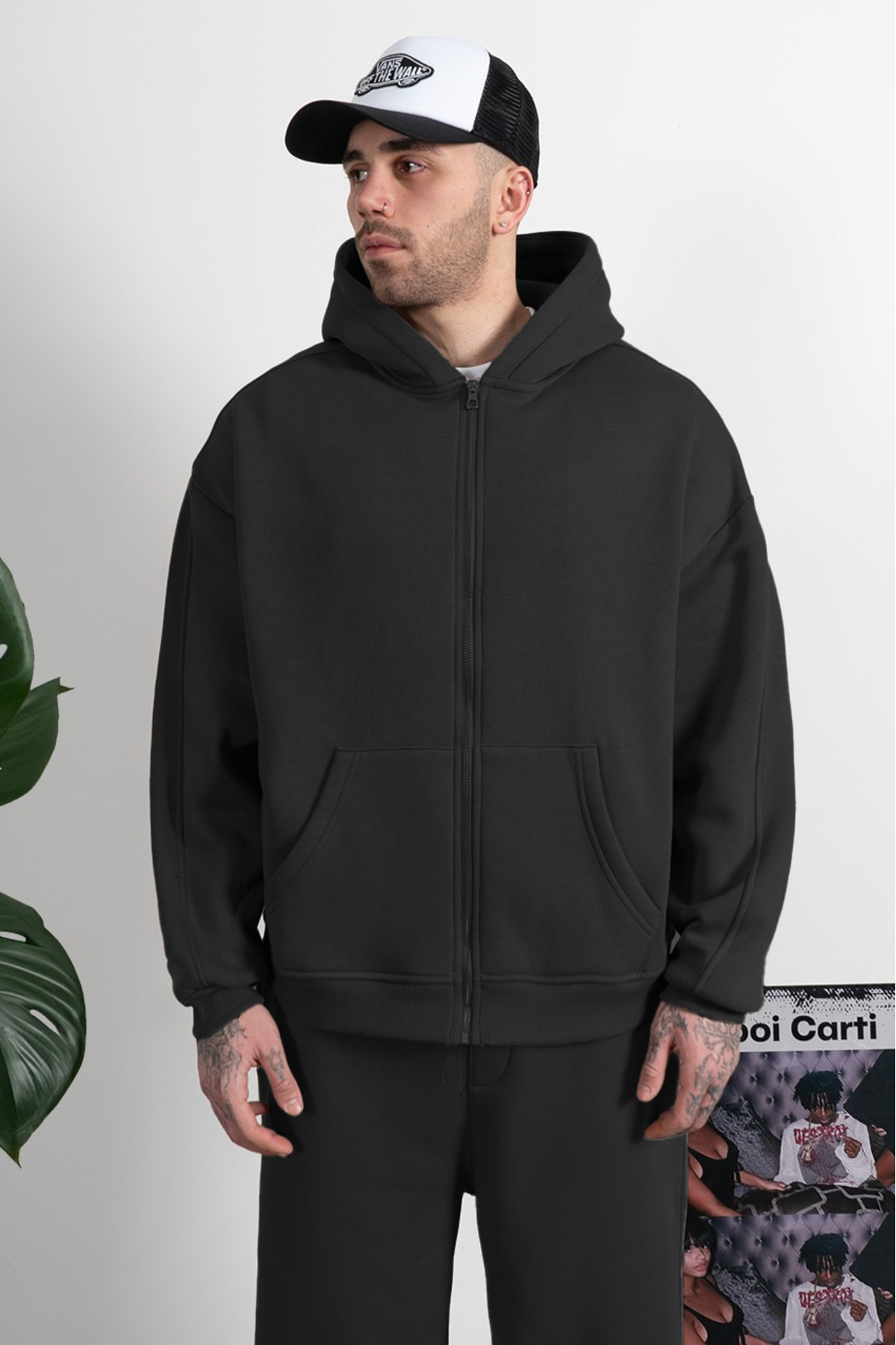 Erkek Ve Kadın Oversize Basic Baskısız Fermuarlı Hırka Erkek Ve Kadın Oversize Basic Baskısız Fermuarlı Hırka BRN-HRKA XL