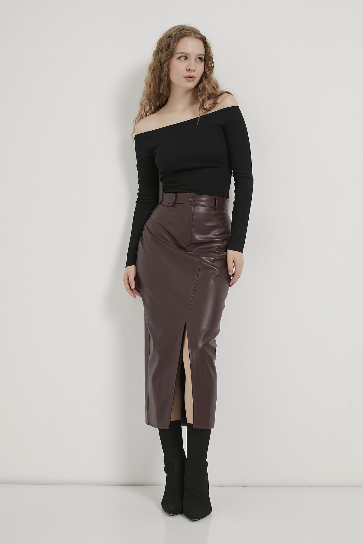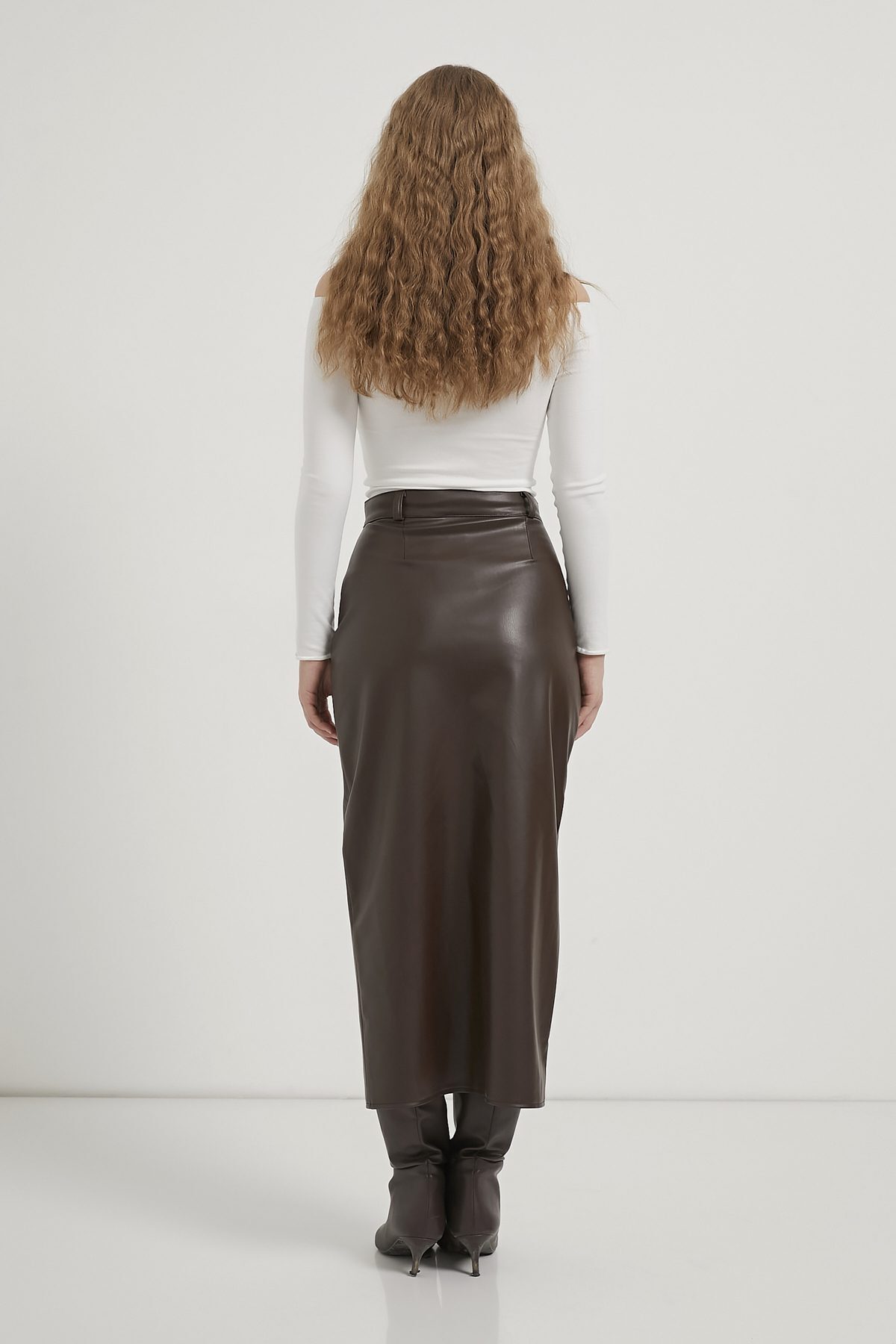 ARMALIFE 3926 CEPLİ YÜKSEK BEL ÖNÜ YIRTMAÇLI SUNİ DERİ KADIN ETEK ARMALIFE 3926 CEPLİ YÜKSEK BEL ÖNÜ YIRTMAÇLI SUNİ DERİ KADIN ETEK 463-5KB3926ETK XL