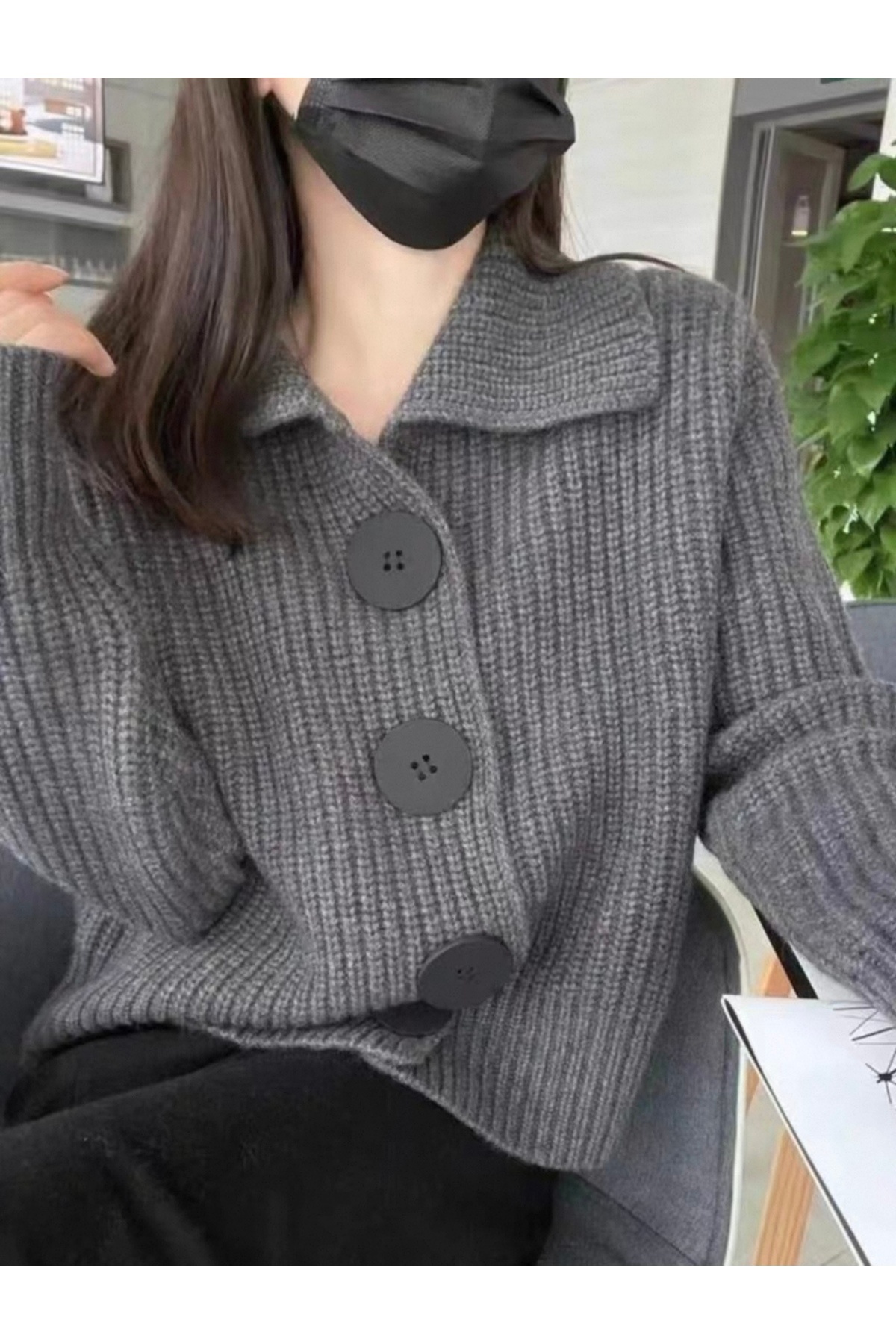 Büyük Düğme Detaylı Hırka Büyük Düğme Detaylı Hırka 1007 تک سایز