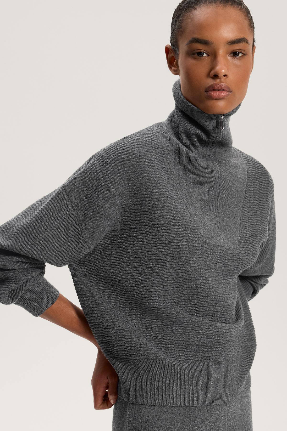 Yapılı yarım fermuarlı örgü kazak Yapılı yarım fermuarlı örgü kazak 33650880 L