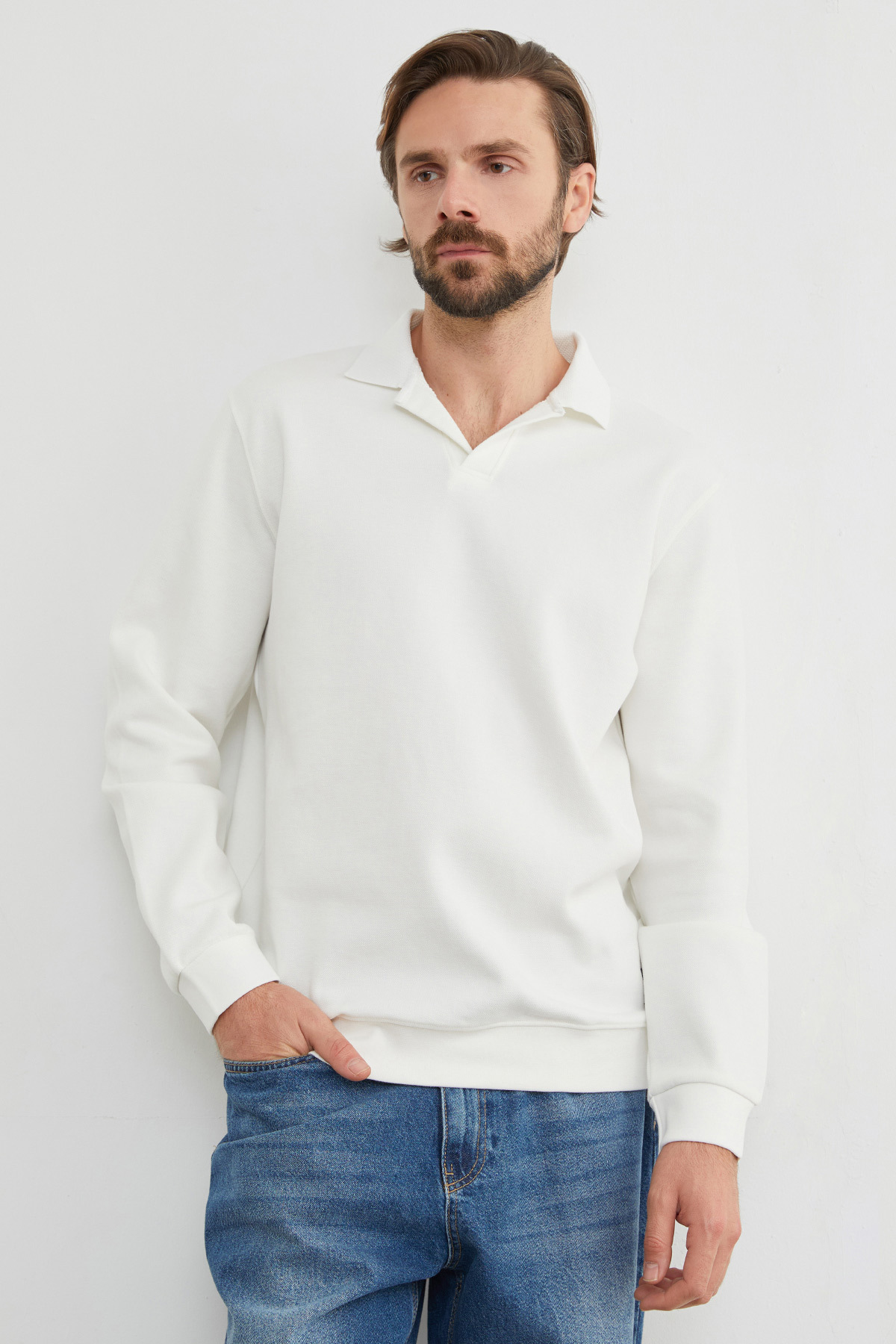 Basic Polo Yaka Pike Sweatshirt Basic Polo Yaka Pike Sweatshirt 26KERK7462132718 3XL