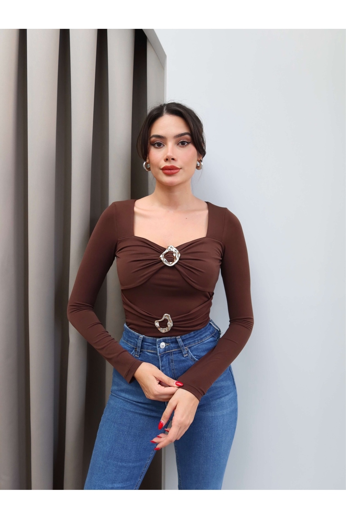 Bel Büzgü Detay Uzun Kollu Bluz Bel Büzgü Detay Uzun Kollu Bluz EH-5985 L