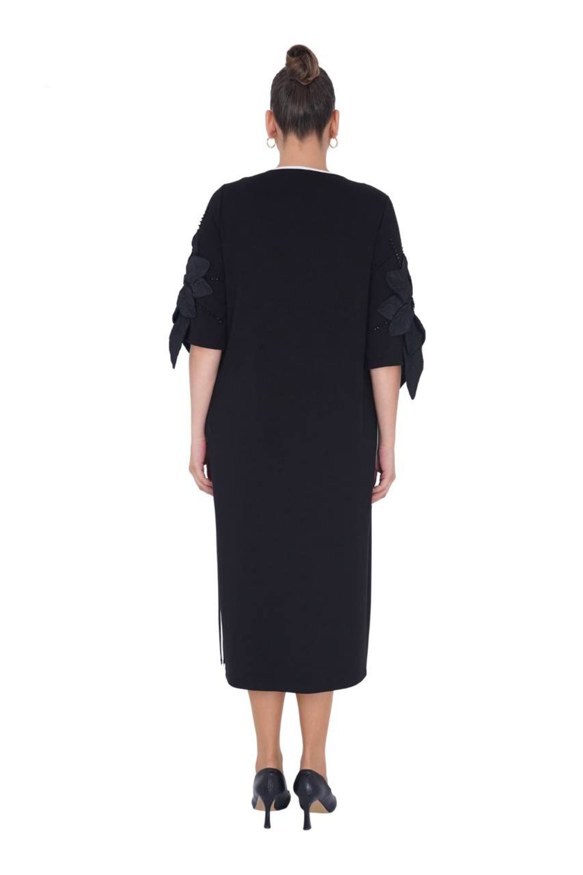 Kadın Büyük Beden Siyah Çiçek Motifli Beyaz Şeritli Uzun Elbise Kadın Büyük Beden Siyah Çiçek Motifli Beyaz Şeritli Uzun Elbise 2309 50