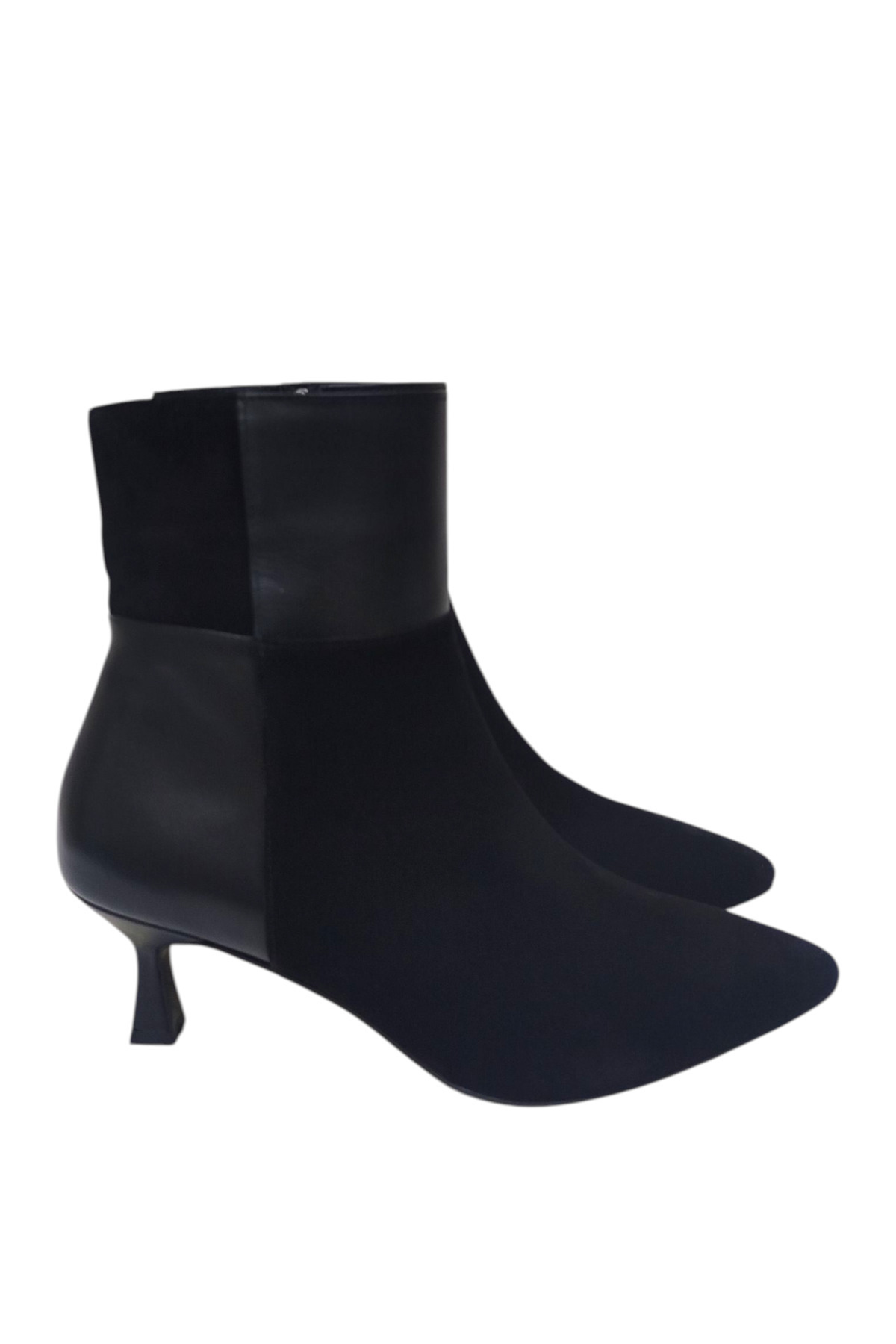Hakiki Deri Siyah Süet Siyah Deri Kadın Bot Ayakkabı Sivri Burun Kısa Topuklu Fermuarlı DRY-2105 Hakiki Deri Siyah Süet Siyah Deri Kadın Bot Ayakkabı Sivri Burun Kısa Topuklu Fermuarlı DRY-2105 41