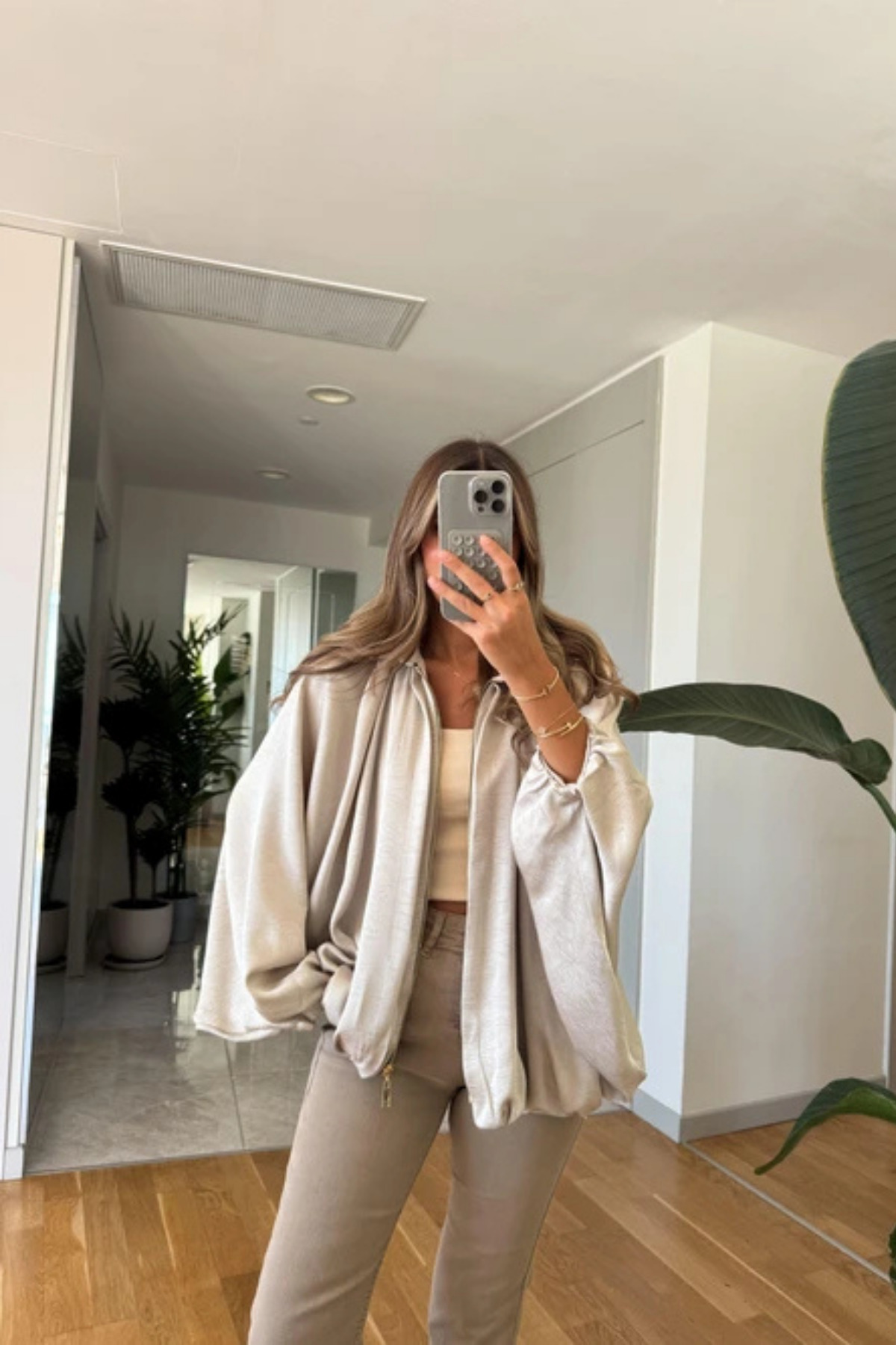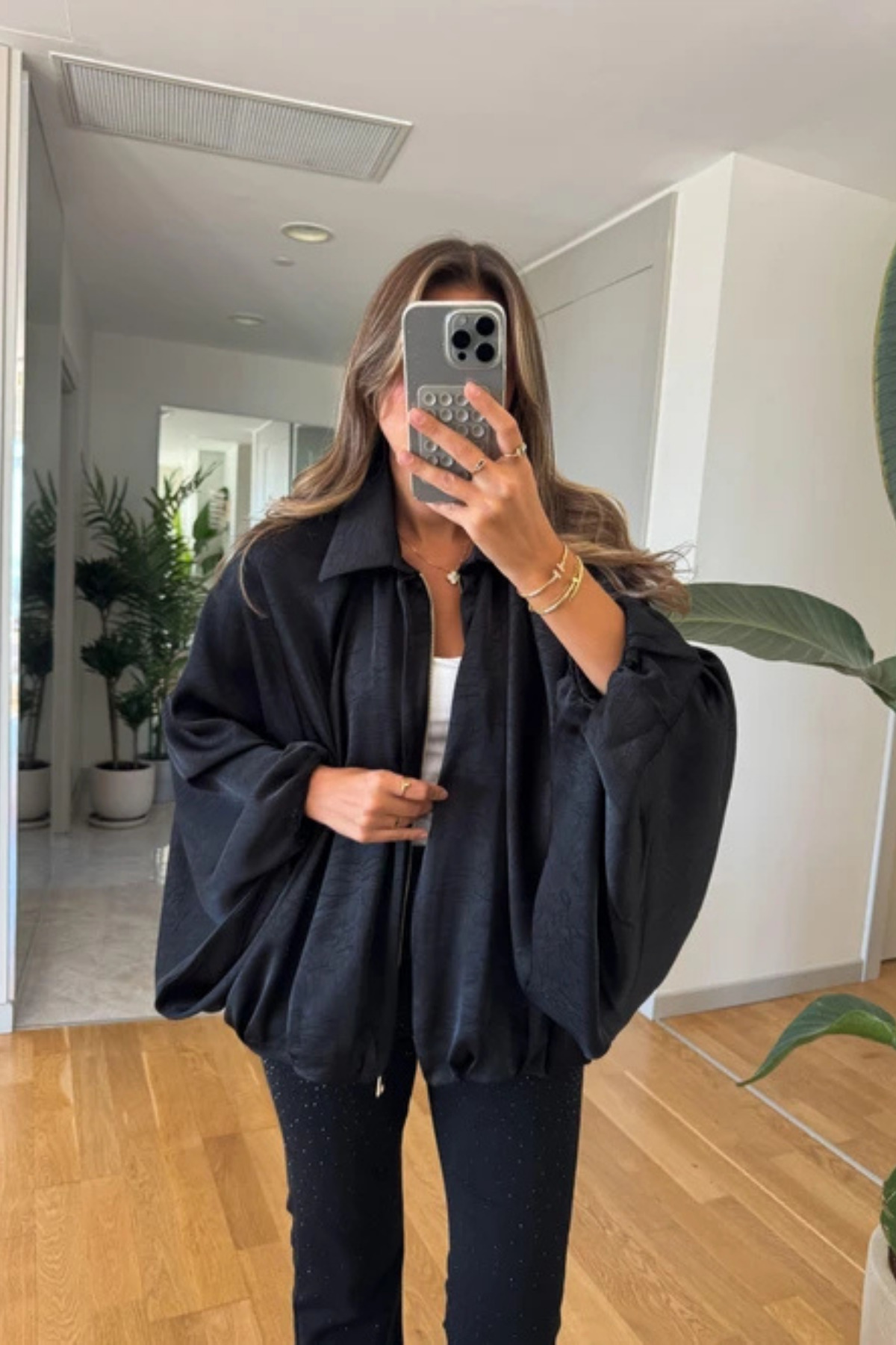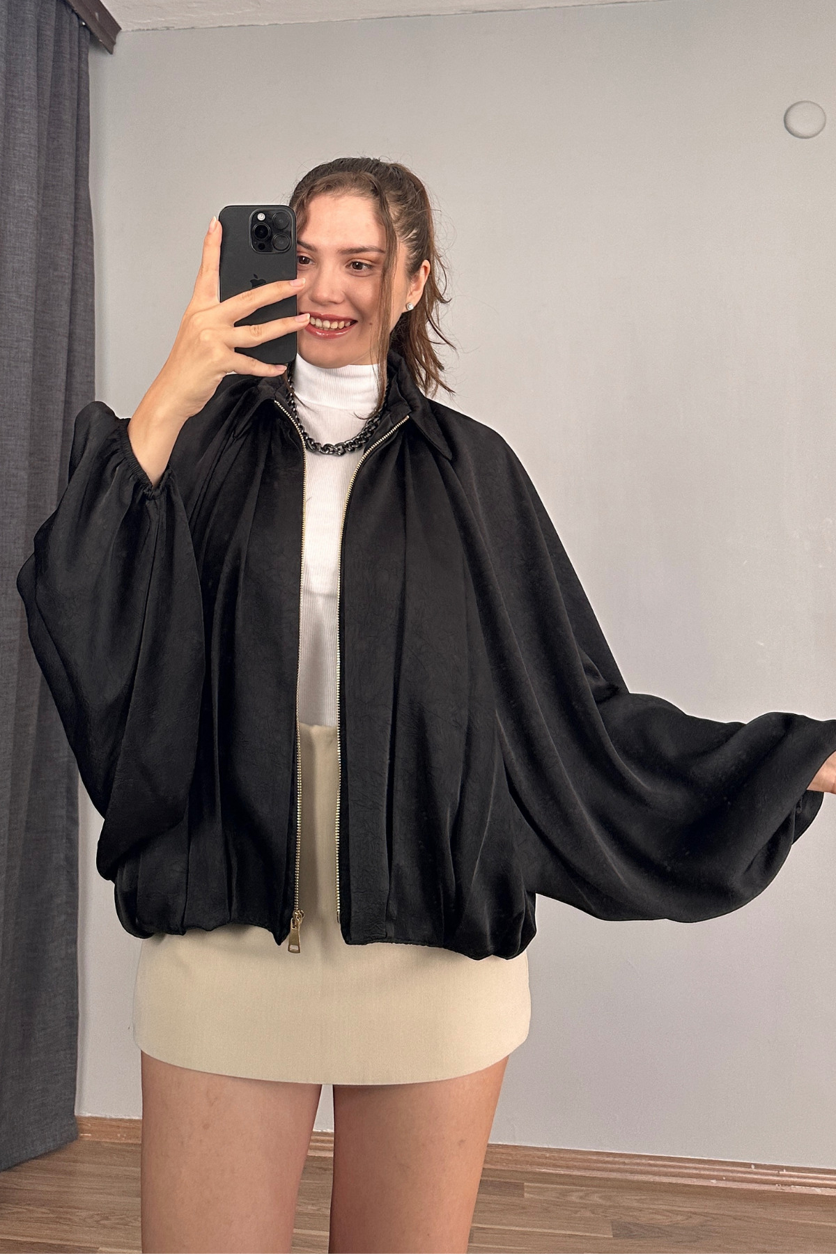 Yarasa Kol Saten Fermuarlı Bomber Ceket Yarasa Kol Saten Fermuarlı Bomber Ceket MZN2024 L