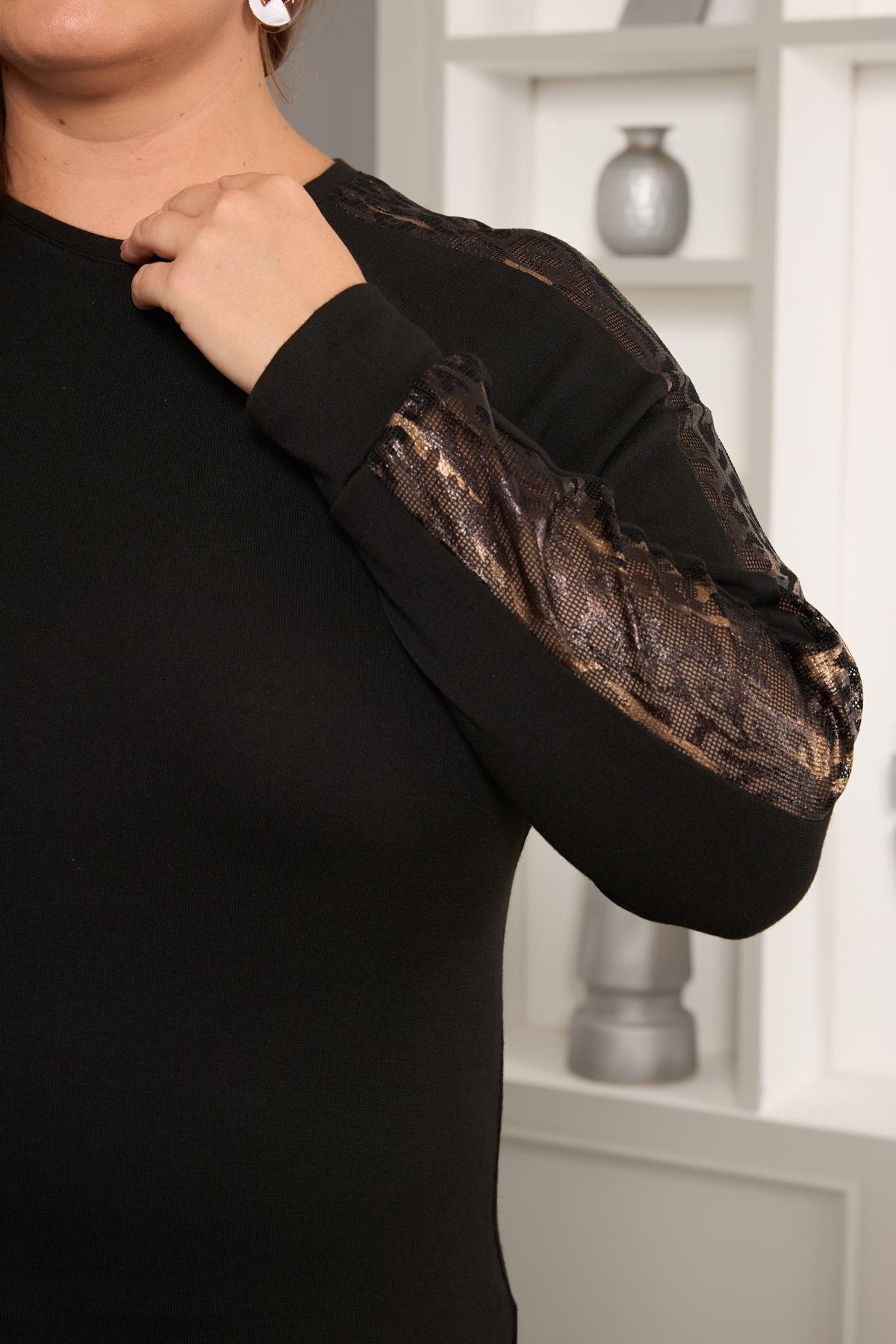 Büyük Beden Kolu Dantel Detay Bluz Siyah Büyük Beden Kolu Dantel Detay Bluz Siyah o6749 58