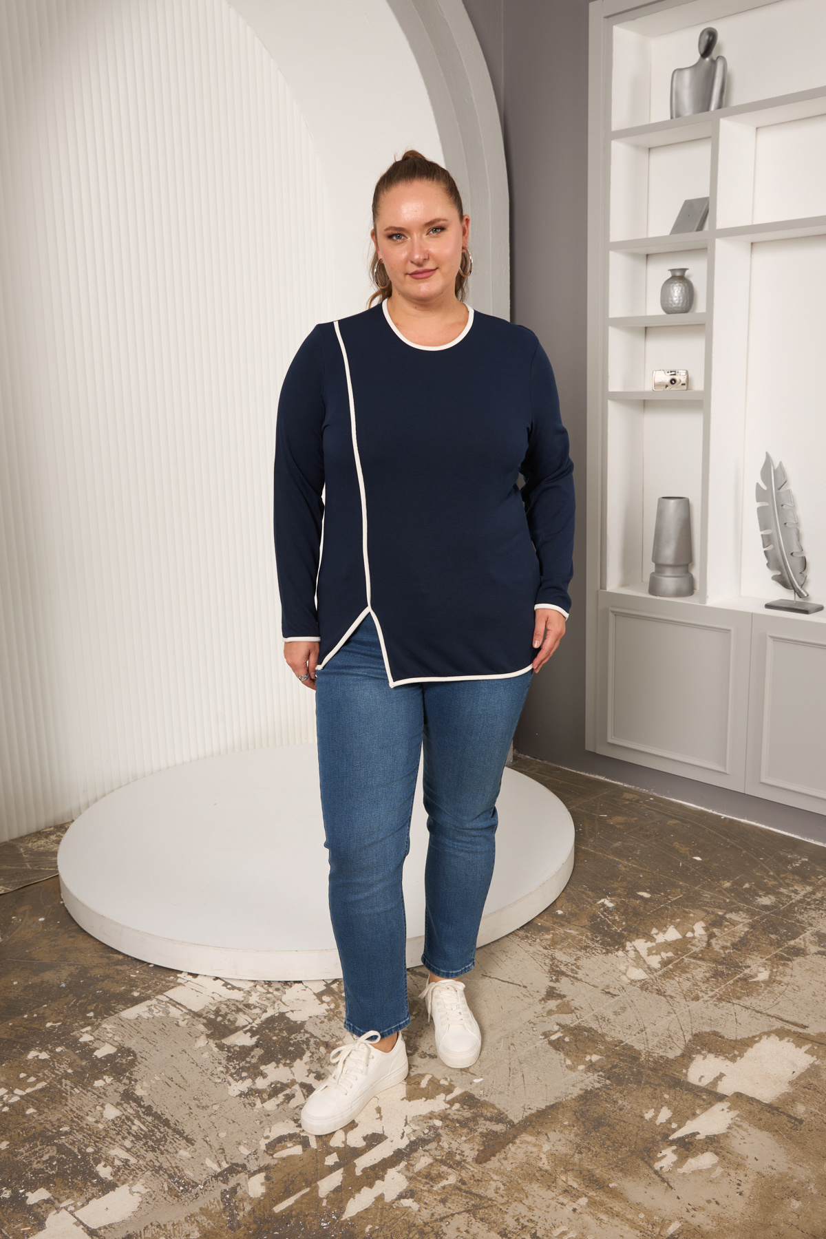 Büyük Beden Kontrast Biye Detaylı Asimetrik Bluz Büyük Beden Kontrast Biye Detaylı Asimetrik Bluz o6750 50