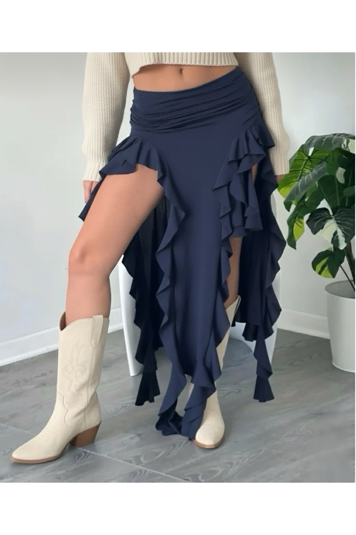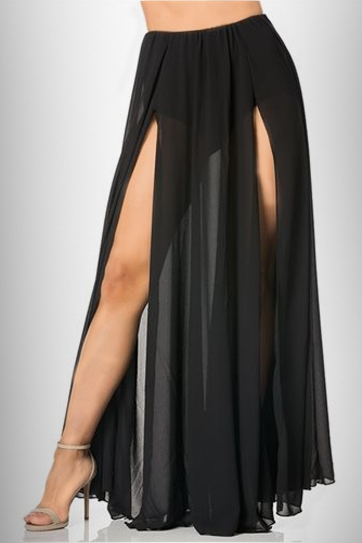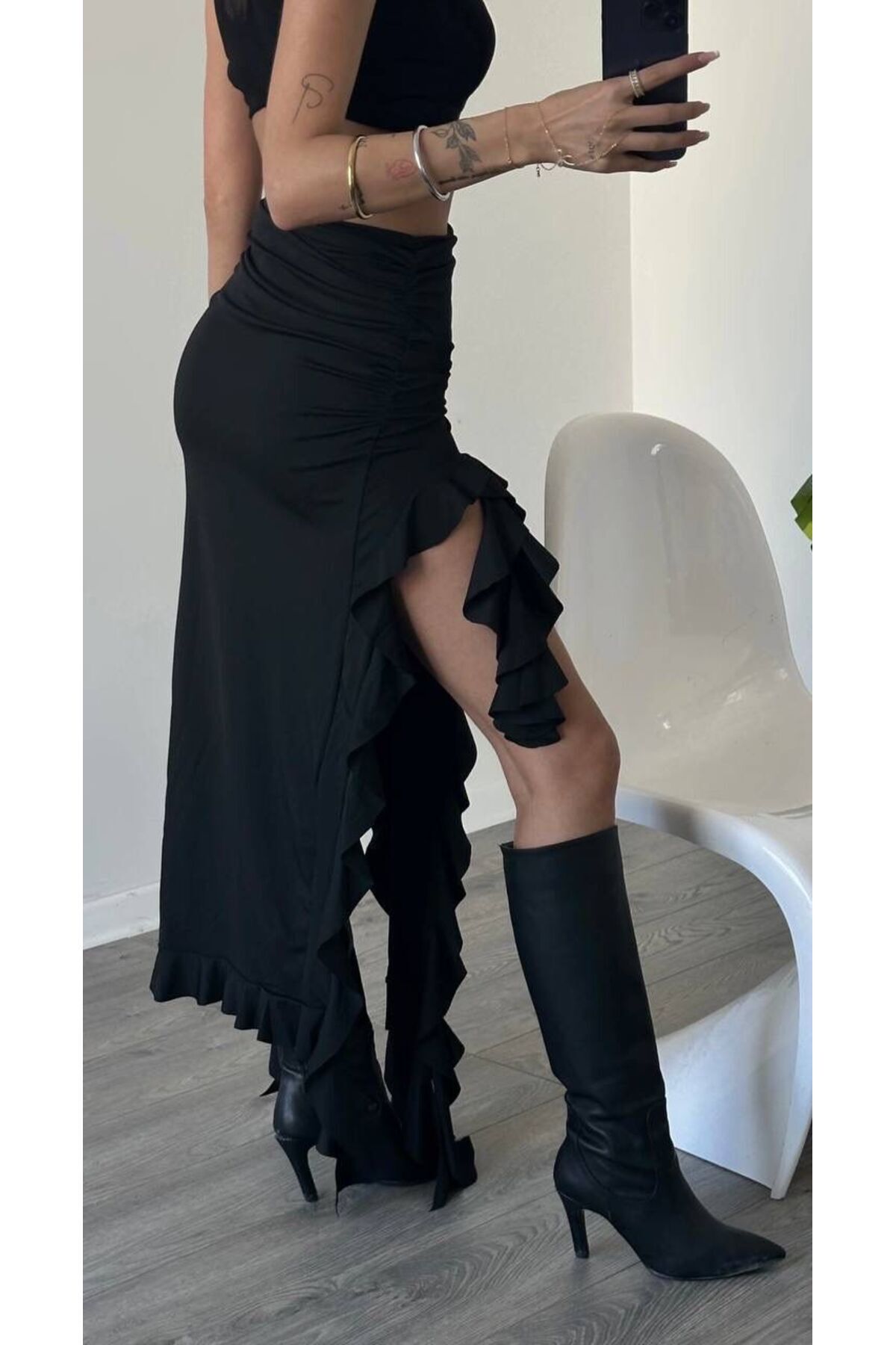 4043 Fırfır Yırtmaçlı Uzun Siyah Etek 4043 Fırfır Yırtmaçlı Uzun Siyah Etek L