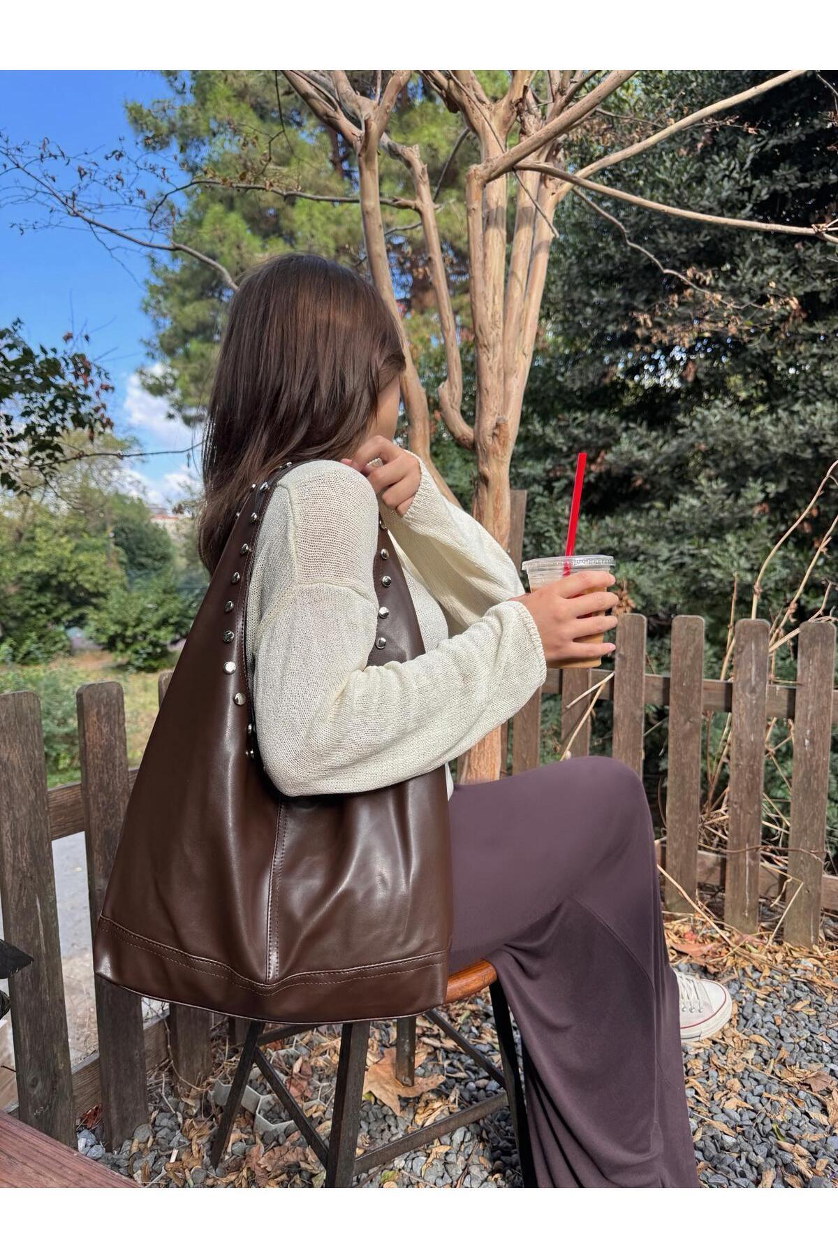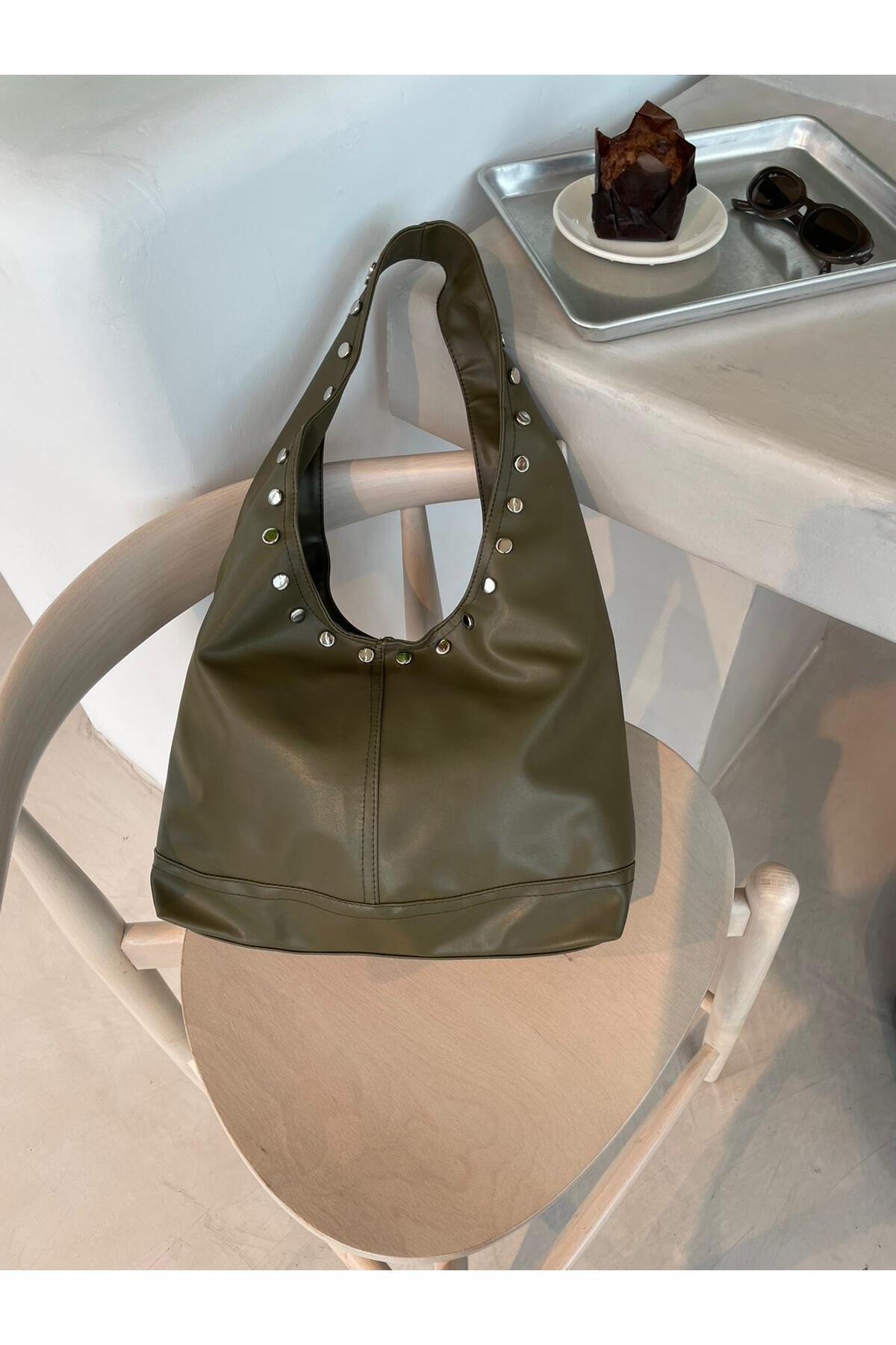 Sap Kenarları Zımbalı Salaş Kol Çantası Sap Kenarları Zımbalı Salaş Kol Çantası 866B25K005 تک سایز