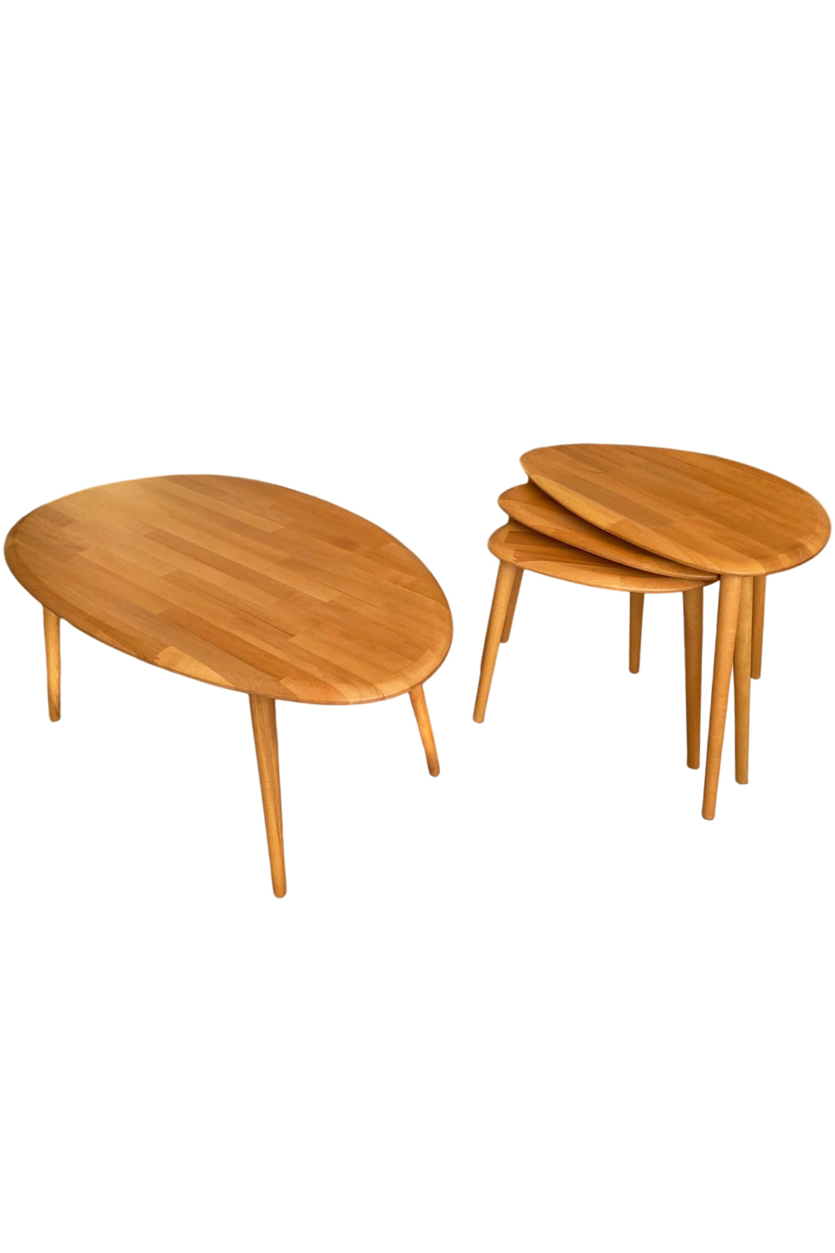 Oval Masif Doğal Ahşap Orta Sehpa ve 3'lü Zigon Sehpa Seti,Modern Asimetrik Tasarım,4'lü Konik Ayak Oval Masif Doğal Ahşap Orta Sehpa ve 3'lü Zigon Sehpa Seti,Modern Asimetrik Tasarım,4'lü Konik Ayak Orta-ZigonSehpa تک سایز