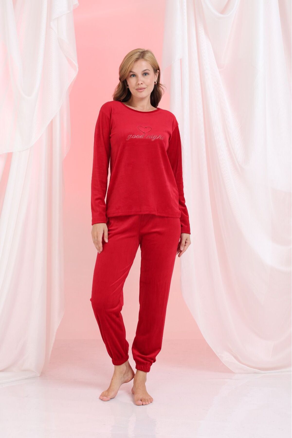 Kadın Kadife Manşet Paça Kışlık Pijama Takımı Kadın Kadife Manşet Paça Kışlık Pijama Takımı EGN-2553 2XL