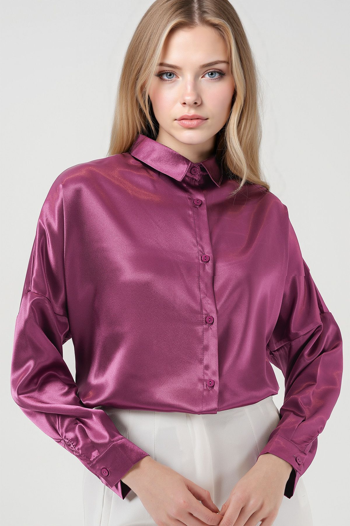 BDART Astarlı Kıvrık Düğmeli Saten Gömlek BDART Astarlı Kıvrık Düğmeli Saten Gömlek MDHVOIG3 XL
